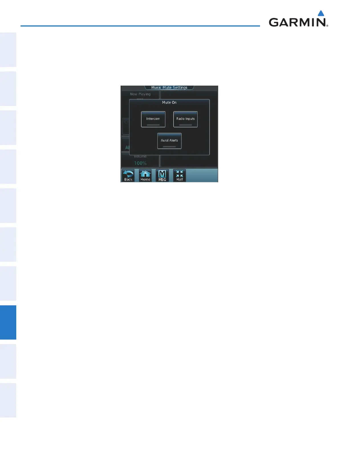 4) Touch the Aural Alerts Annunciator Button to allow automatic muting of entertainment audio when an aural
