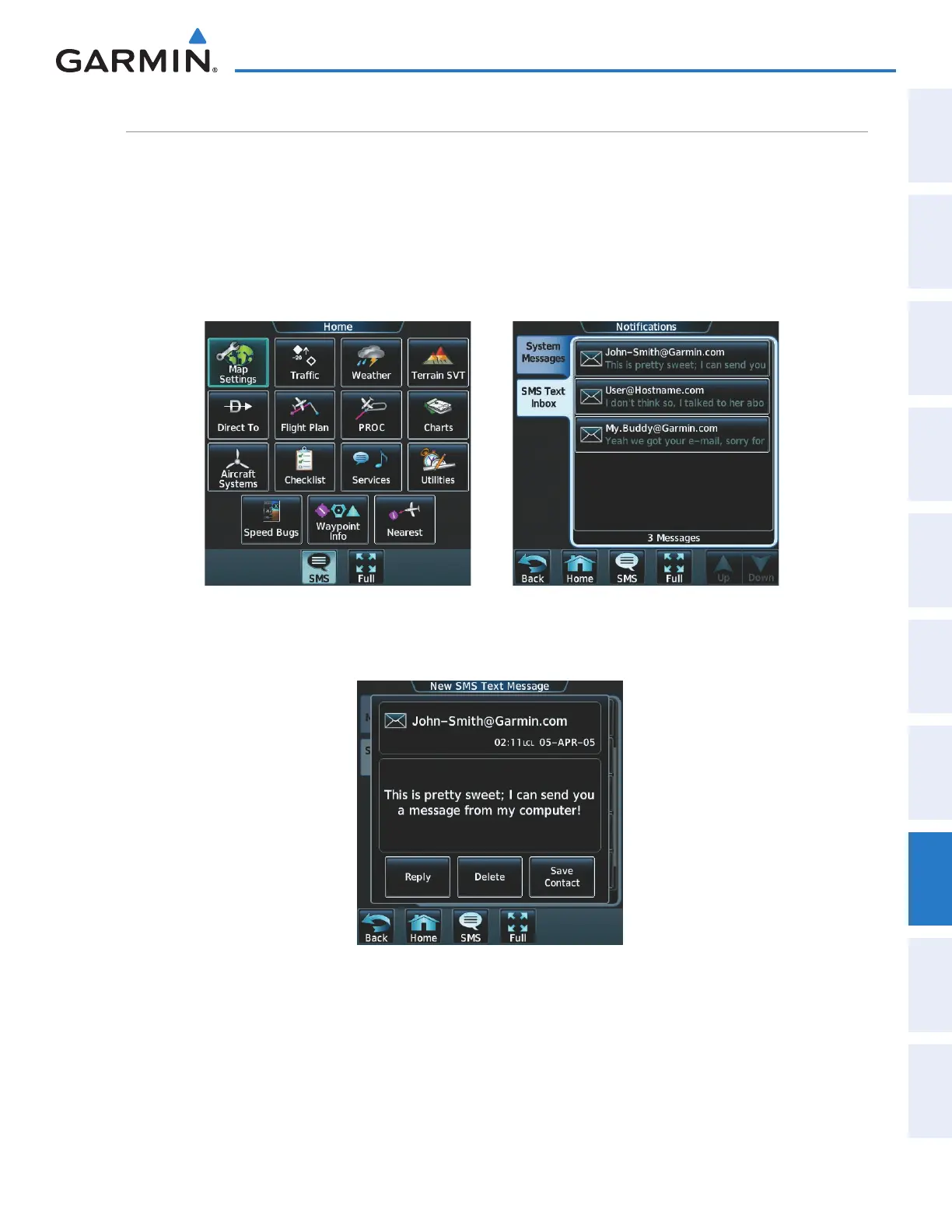 The pilot or copilot can send and receive text messages on the Iridium satellite network. Messages may be