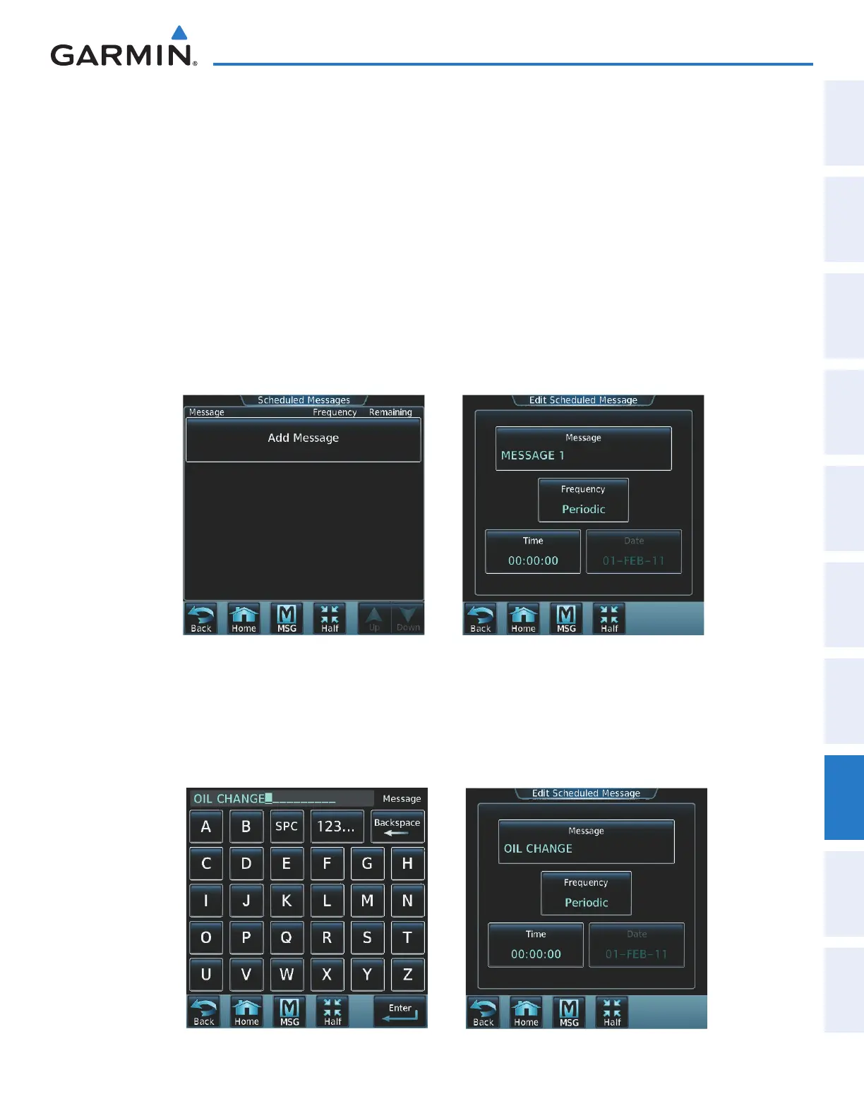 fuel tanks, or Altimeter-Transponder Check) on the Messages Screen of the Touchscreen Controller. Messages