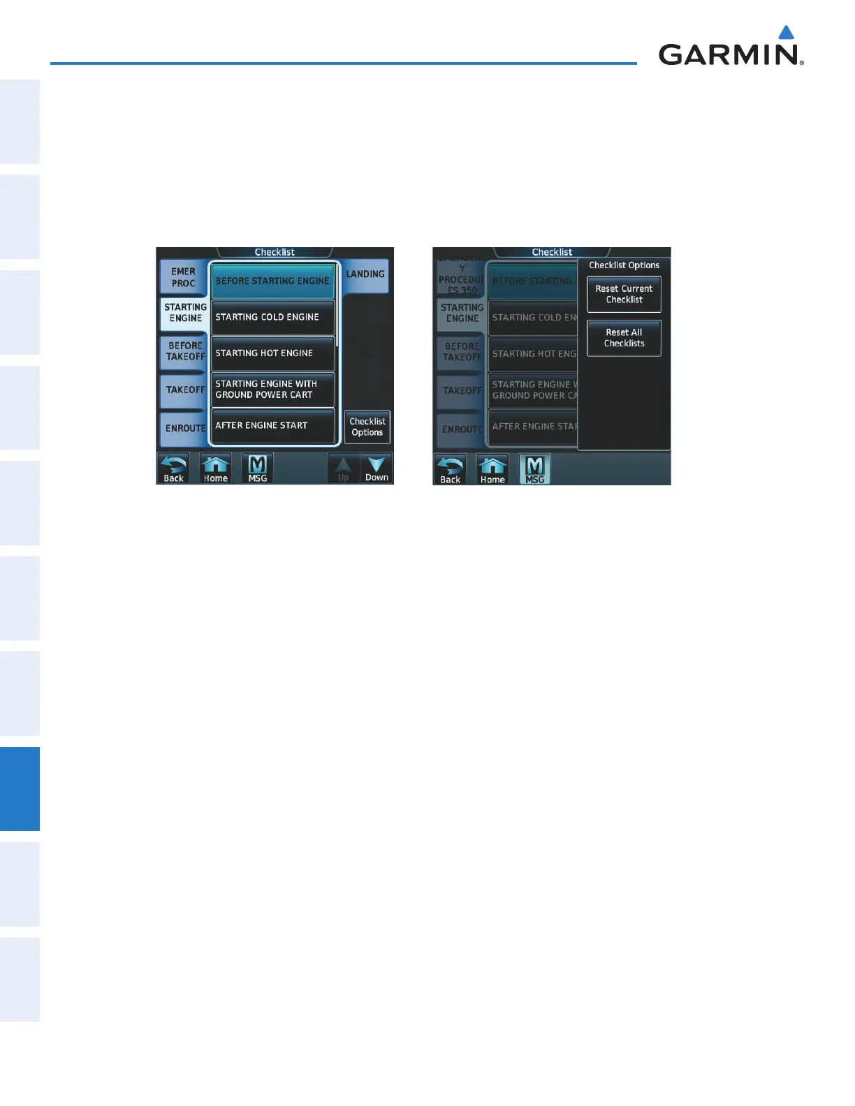 2) Touch the desired checklist to reset. BEFORE STARTING ENGINE is selected in Figure 8-126.