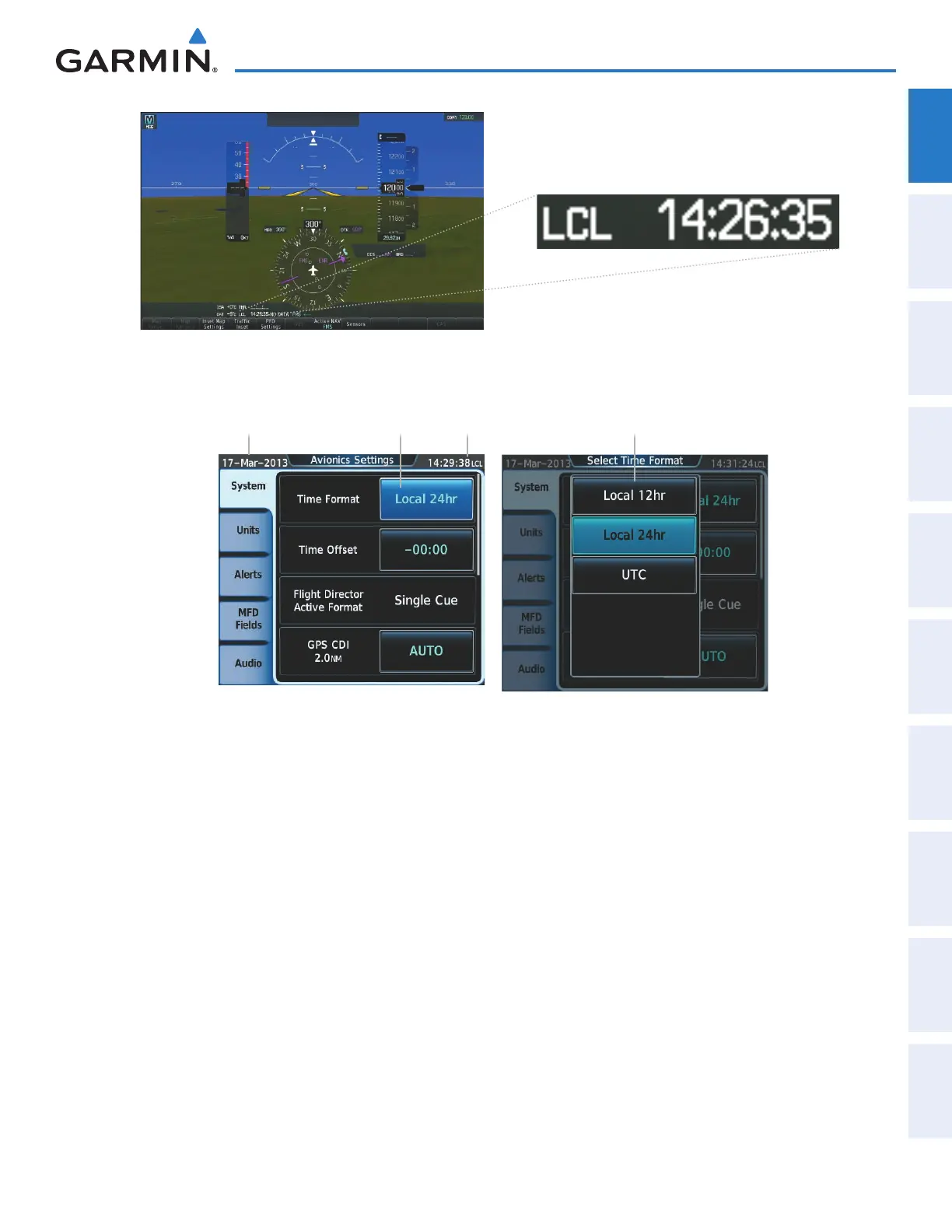 1) From the Home, touch Utilities > Setup > Avionics Settings.
