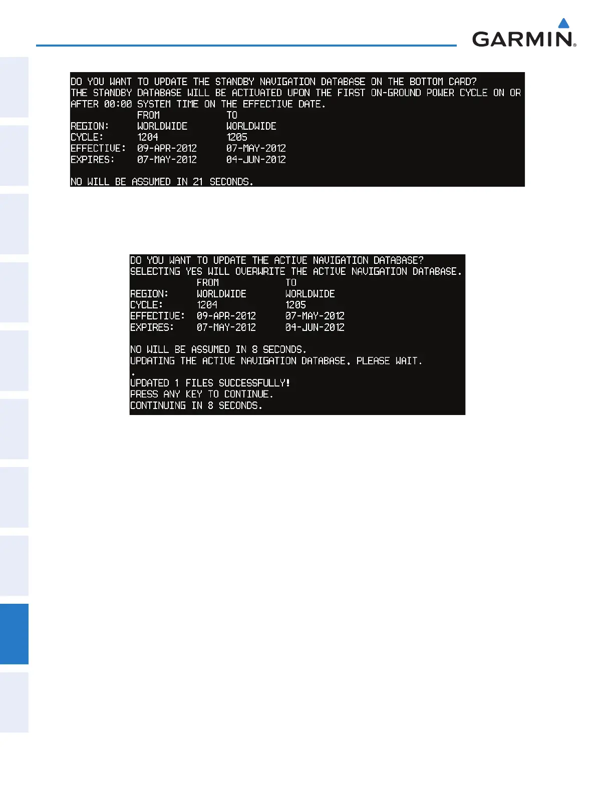 Figure B-1 Standby Navigation Database Prompt