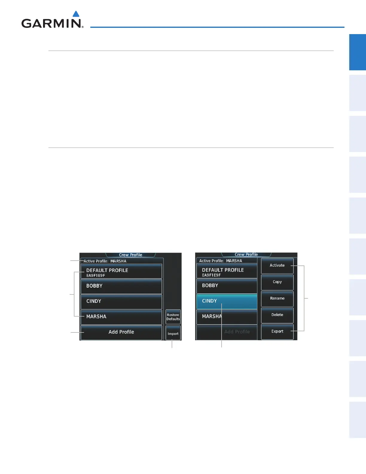 up to 25 crew profiles. From here, crew profiles may be added, renamed, activated, copied, or deleted. In