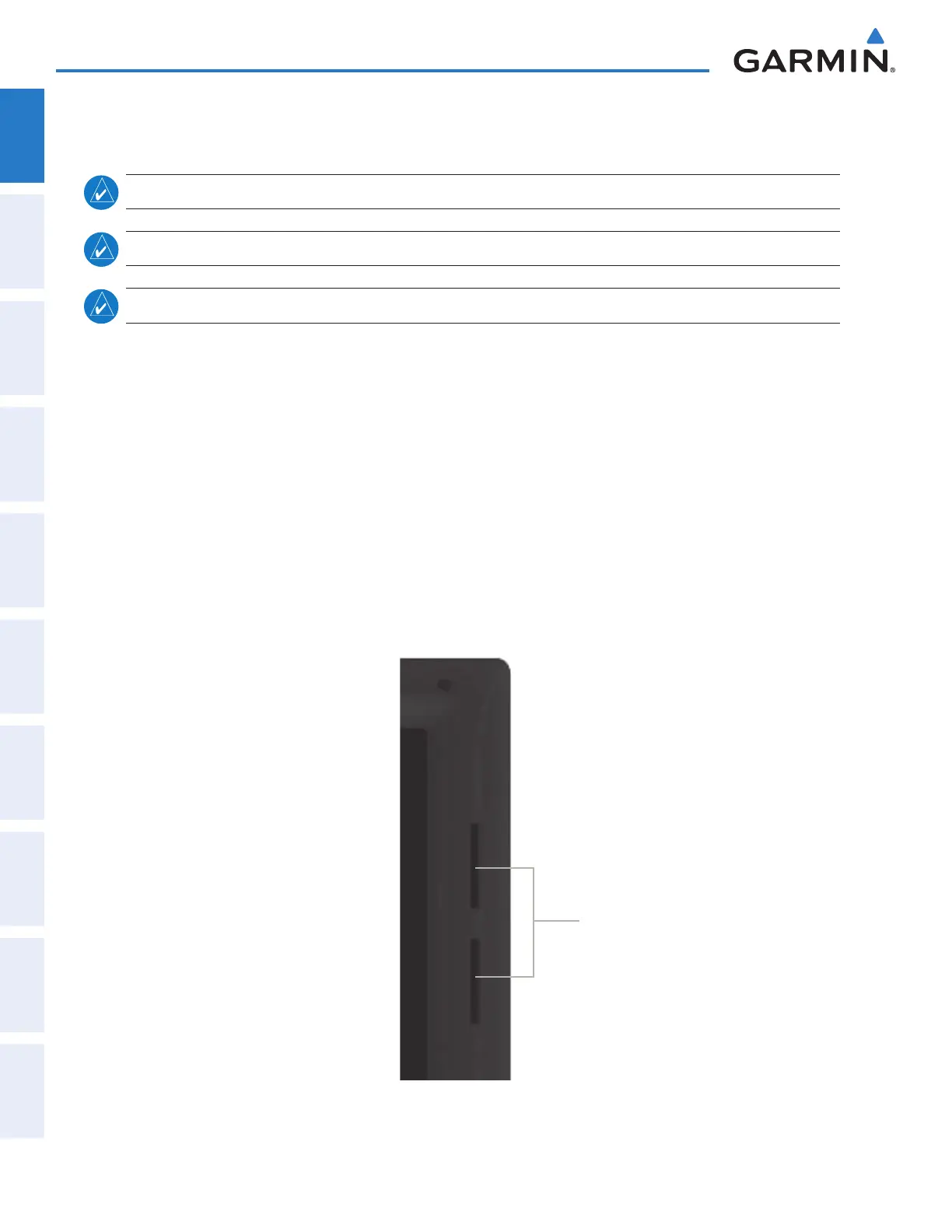 Not all SD cards are compatible with the system. Use only SD cards supplied by Garmin or the aircraft