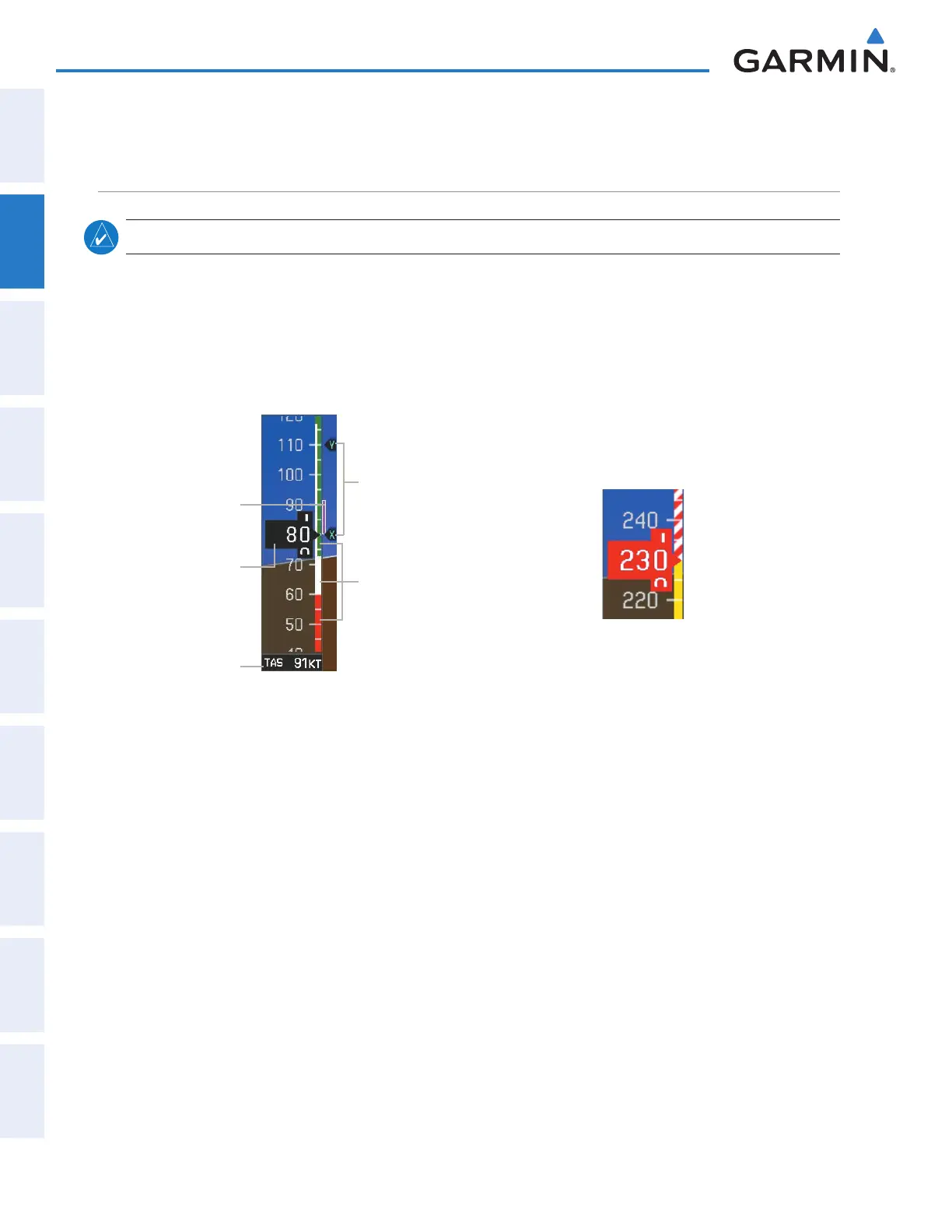 , the text of the actual airspeed readout changes to yellow. The trend vector is absent if the speed remains