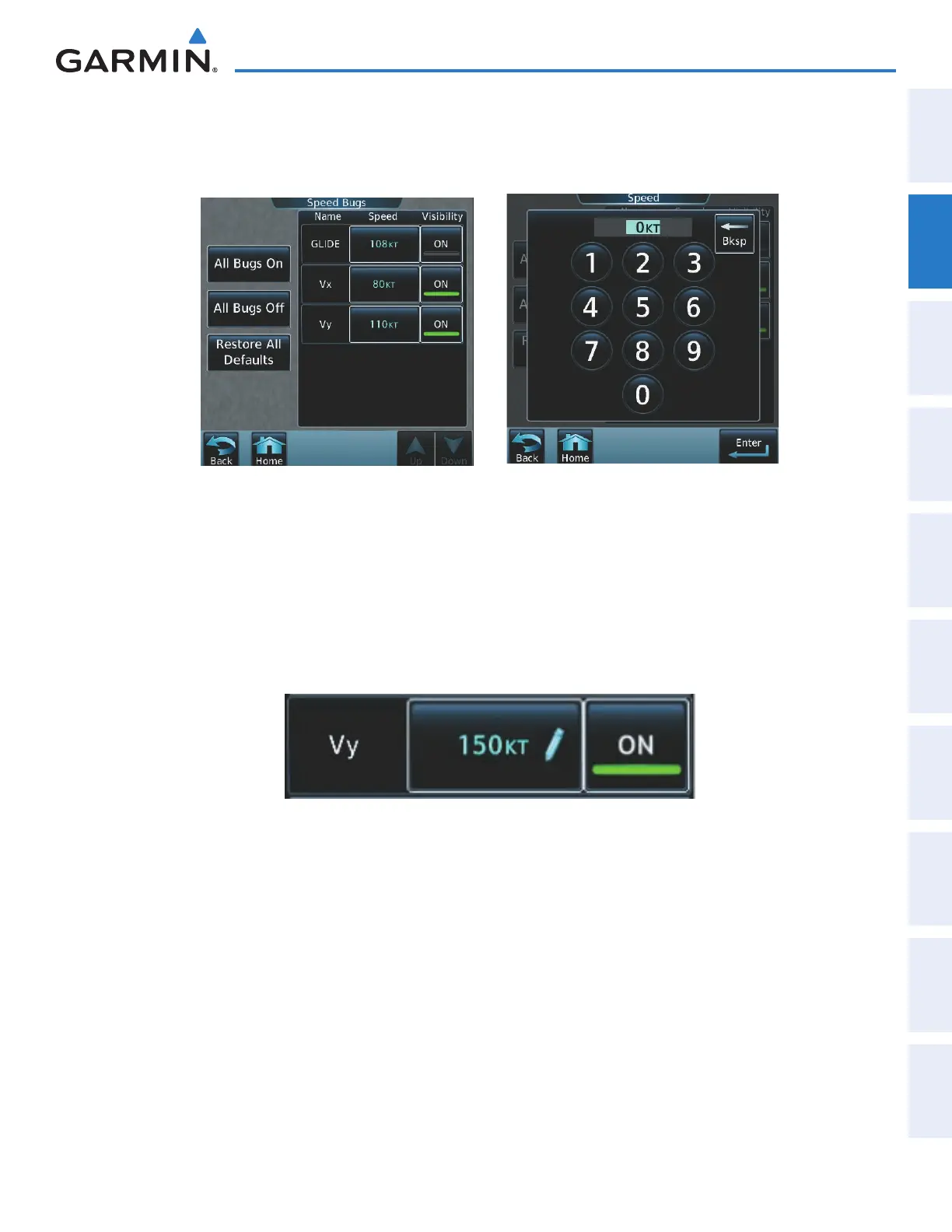 3) To set or change a Vspeed value, touch the Data Field for the Vspeed, enter a value in the keypad, and touch