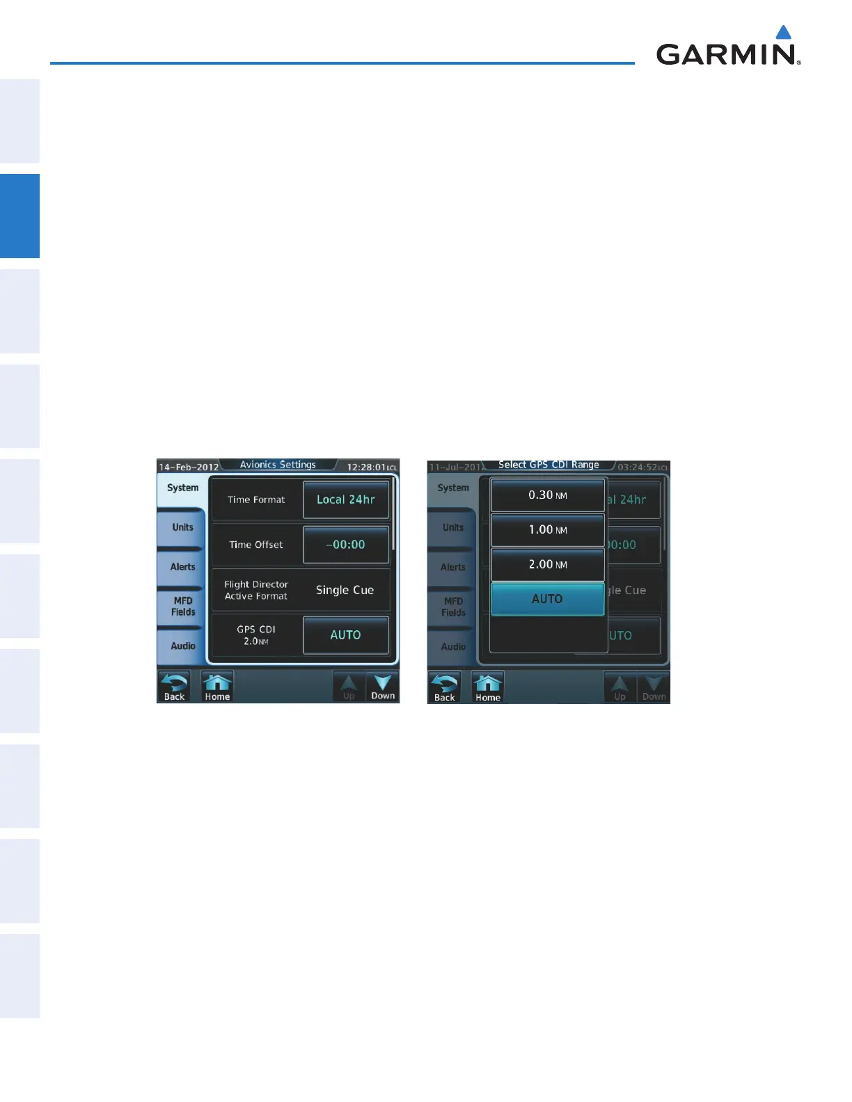 1) From the Home Screen, touch Setup > Avionics Settings.