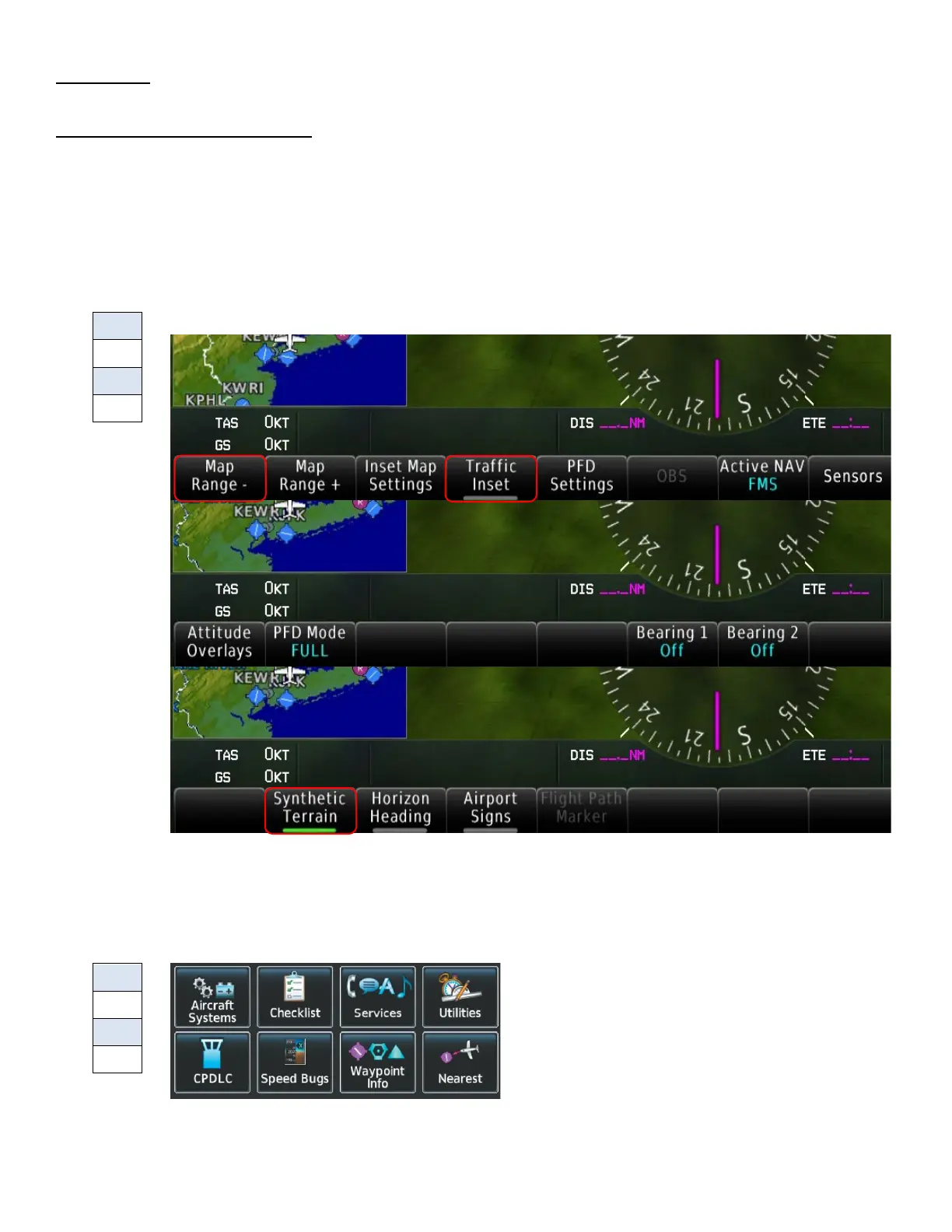 o On the PFD, select PFD Settings, then select Attitude Overlays. If Synthetic Terrain
