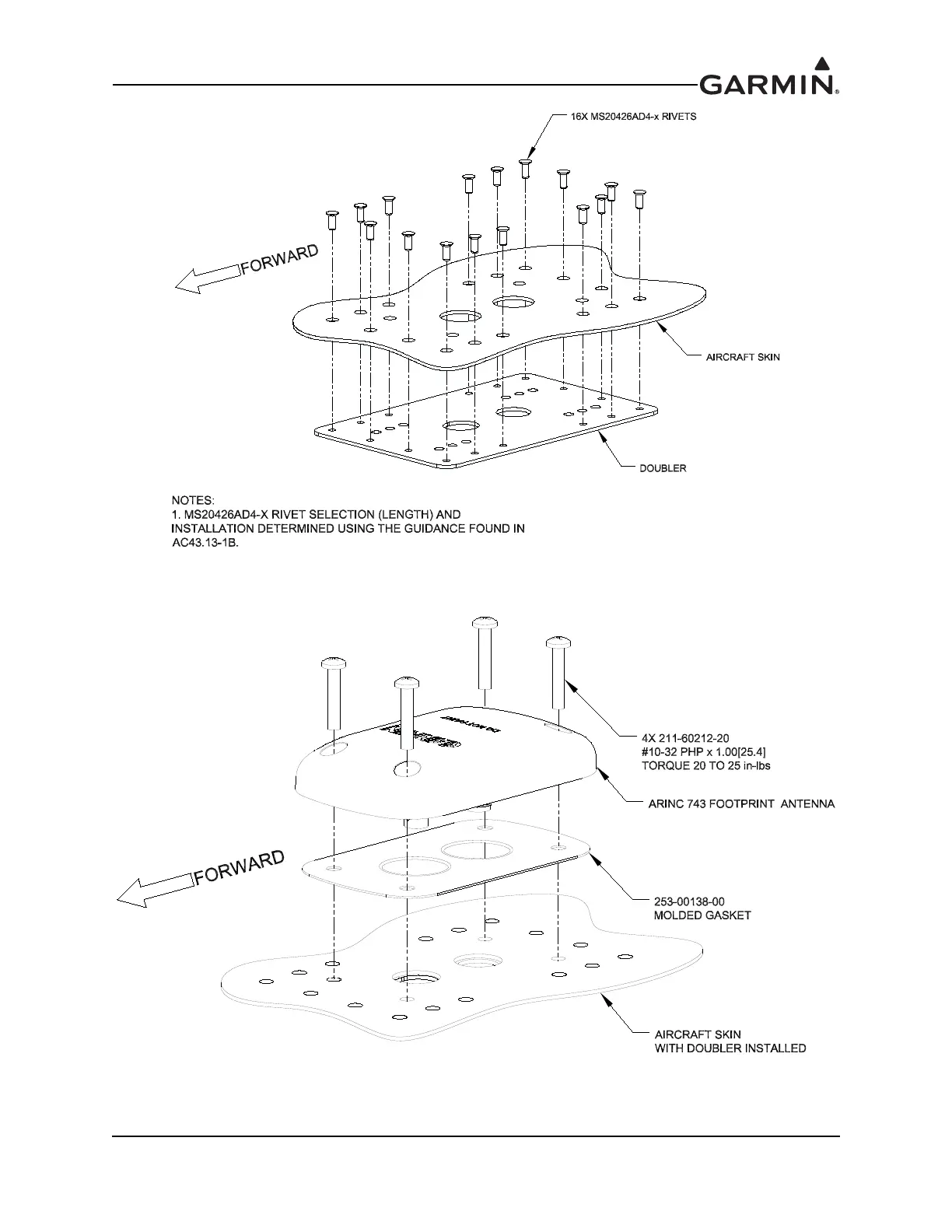 Garmin G3X Touch - Doubler Installation,Arinc 743, Skin Thickness 0.051 to 0.063; Installation of ARINC 743 Footprint Antenna