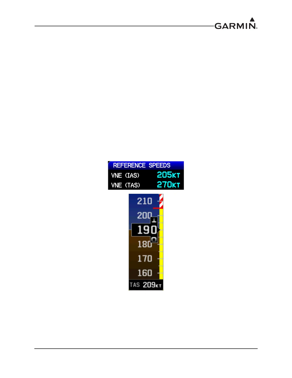 marked on the PFD airspeed tape with a red line, and does not change with altitude. In this example, the