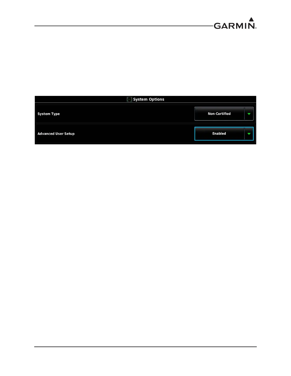 The System Options Page is used to display the selections of System Type and Advanced User Setup