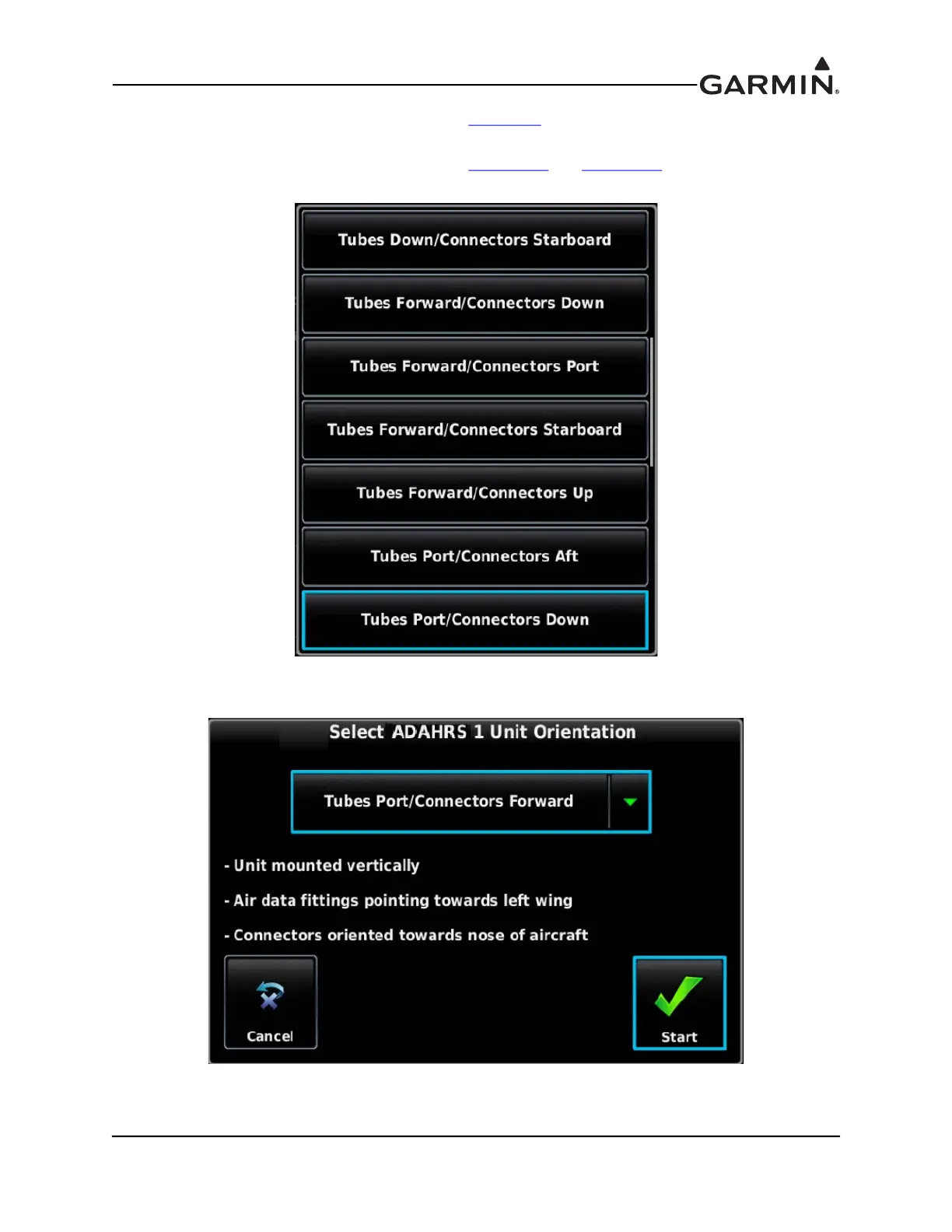 5. For a G3X system using a GSU 73, refer to Figure F-8 to find the correct LRU orientation. Select