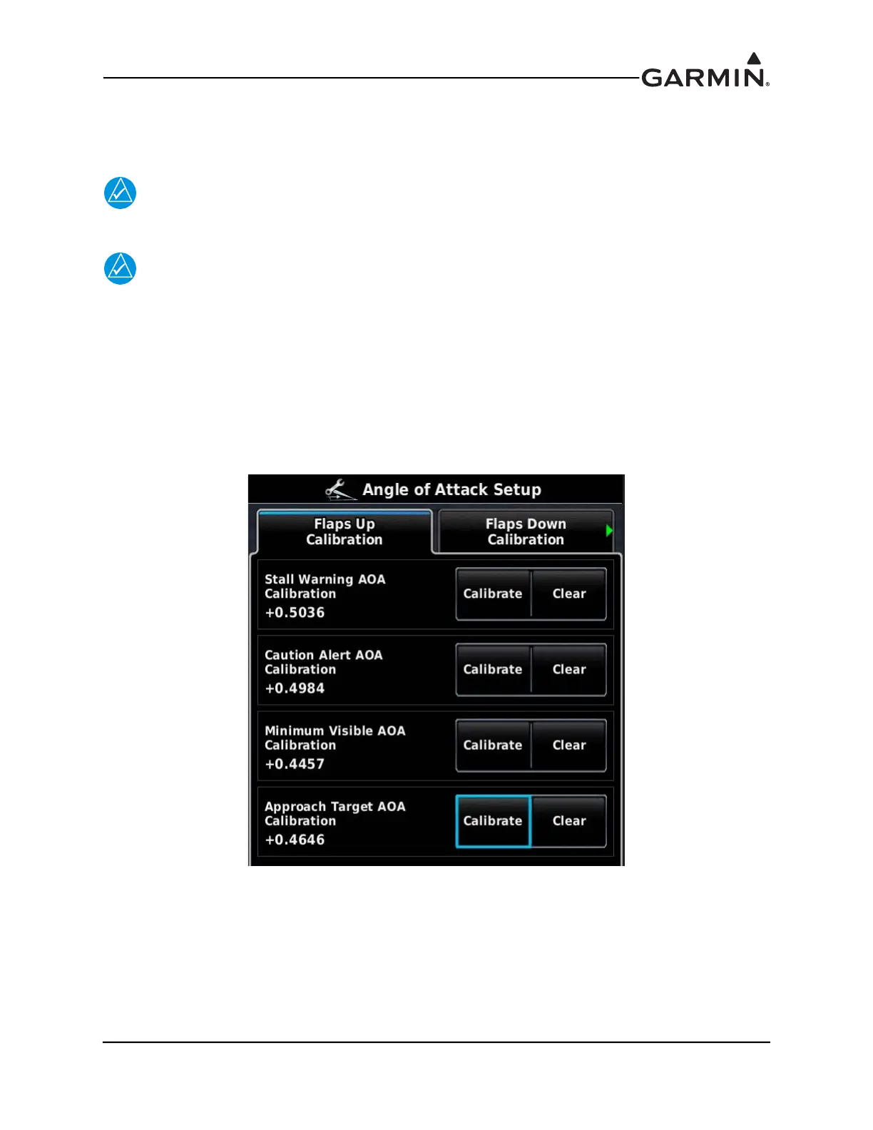 • The stall warning AOA calibration value (resultant from the calibration procedure) must be greater