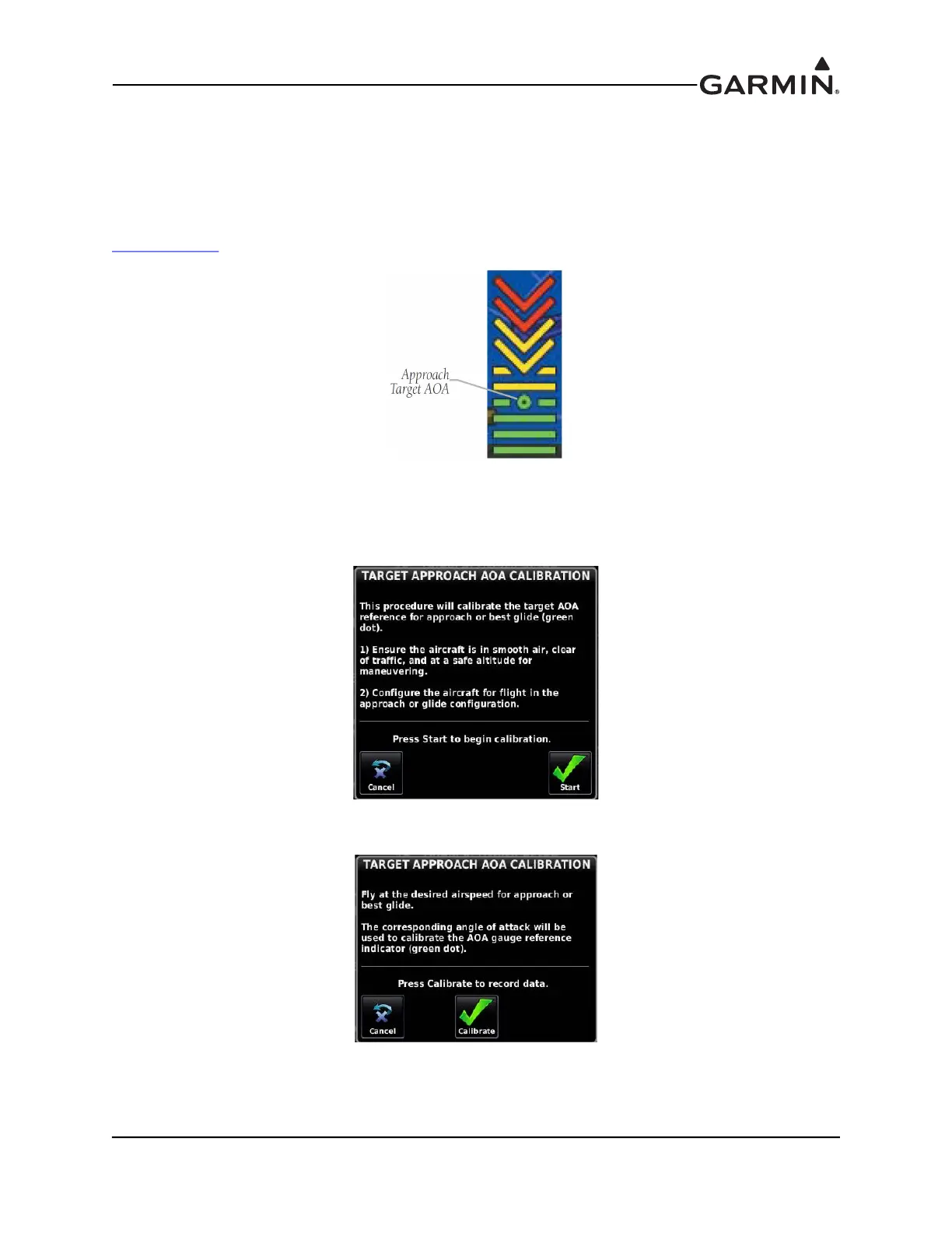 highlighted. Select the Approach Target AOA Calibration field, then press the Calibrate button