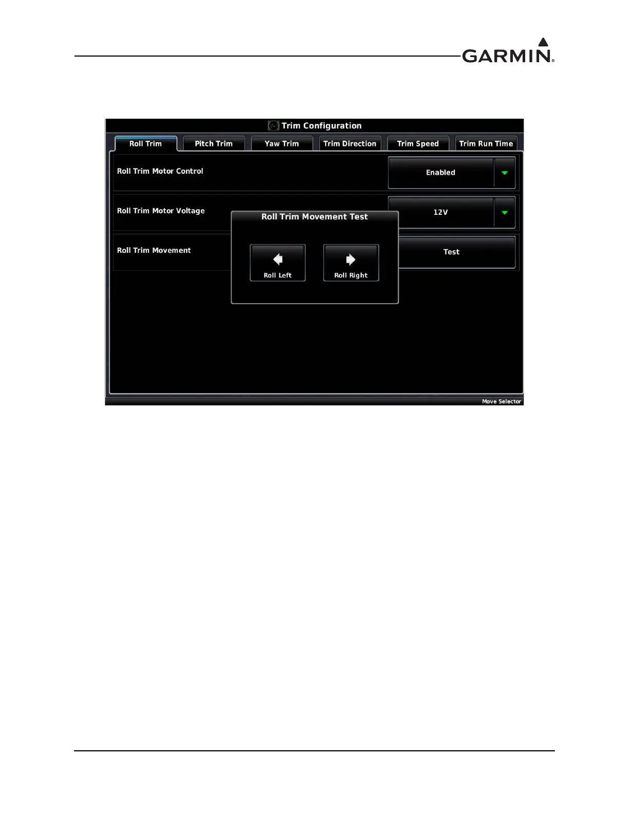 Roll Trim Movement Test popup window.