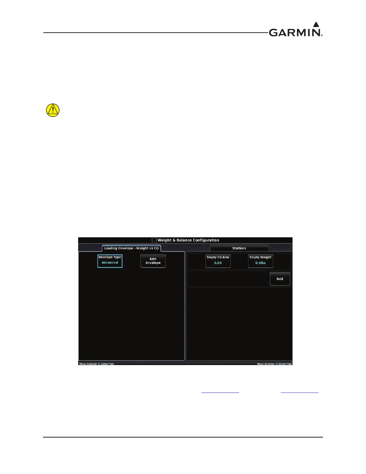 Configuring the Weight & Balance function is optional. The Weight & Balance Configuration Page allows
