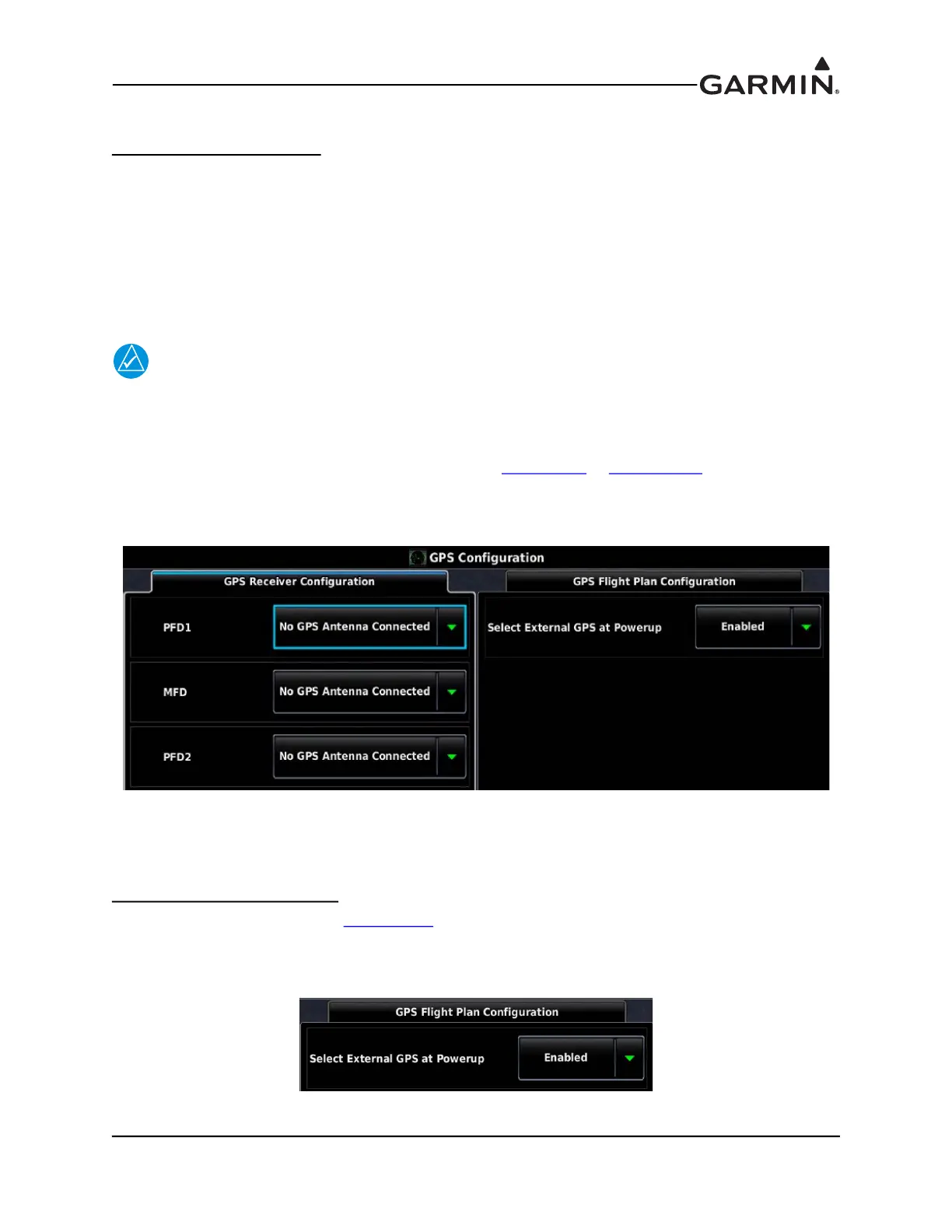 select either the GPS antenna directly connected to that GDU, or ‘No GPS Antenna Connected’. If ‘No