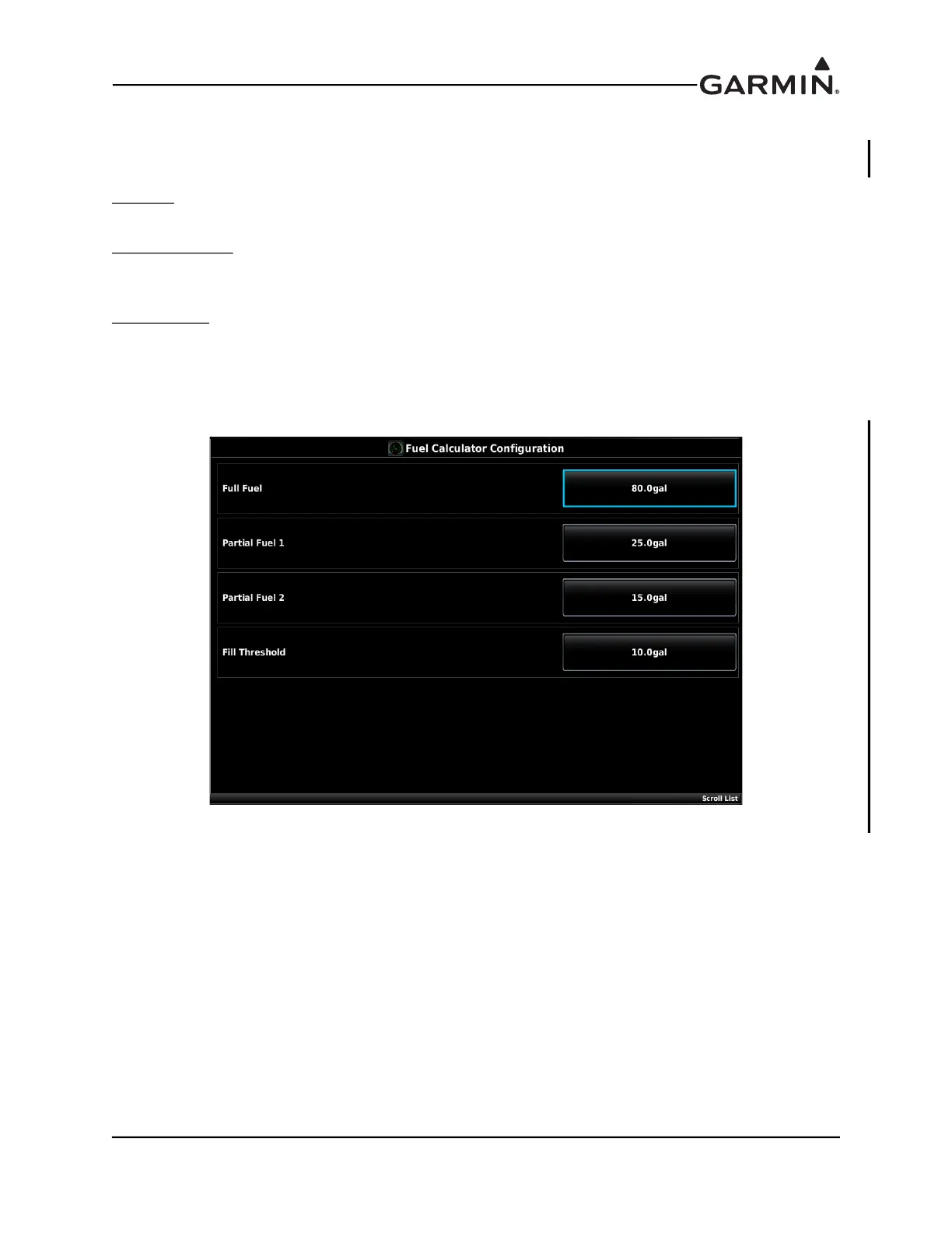 – Sets the Full Fuel quantity for the fuel computer. Set according to the fuel tank capacity (set to