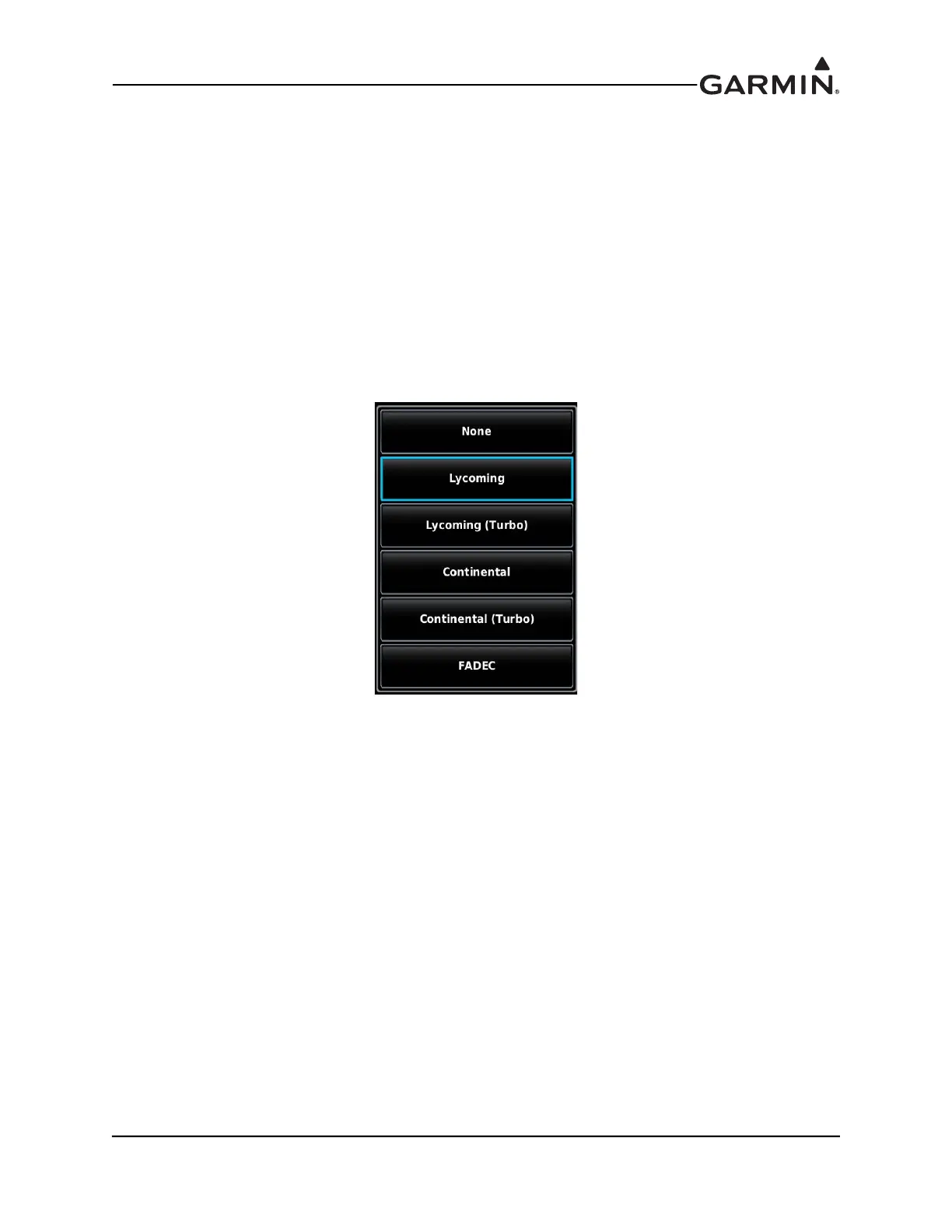 To display engine power data or related status information from a FADEC engine, select "FADEC" for the