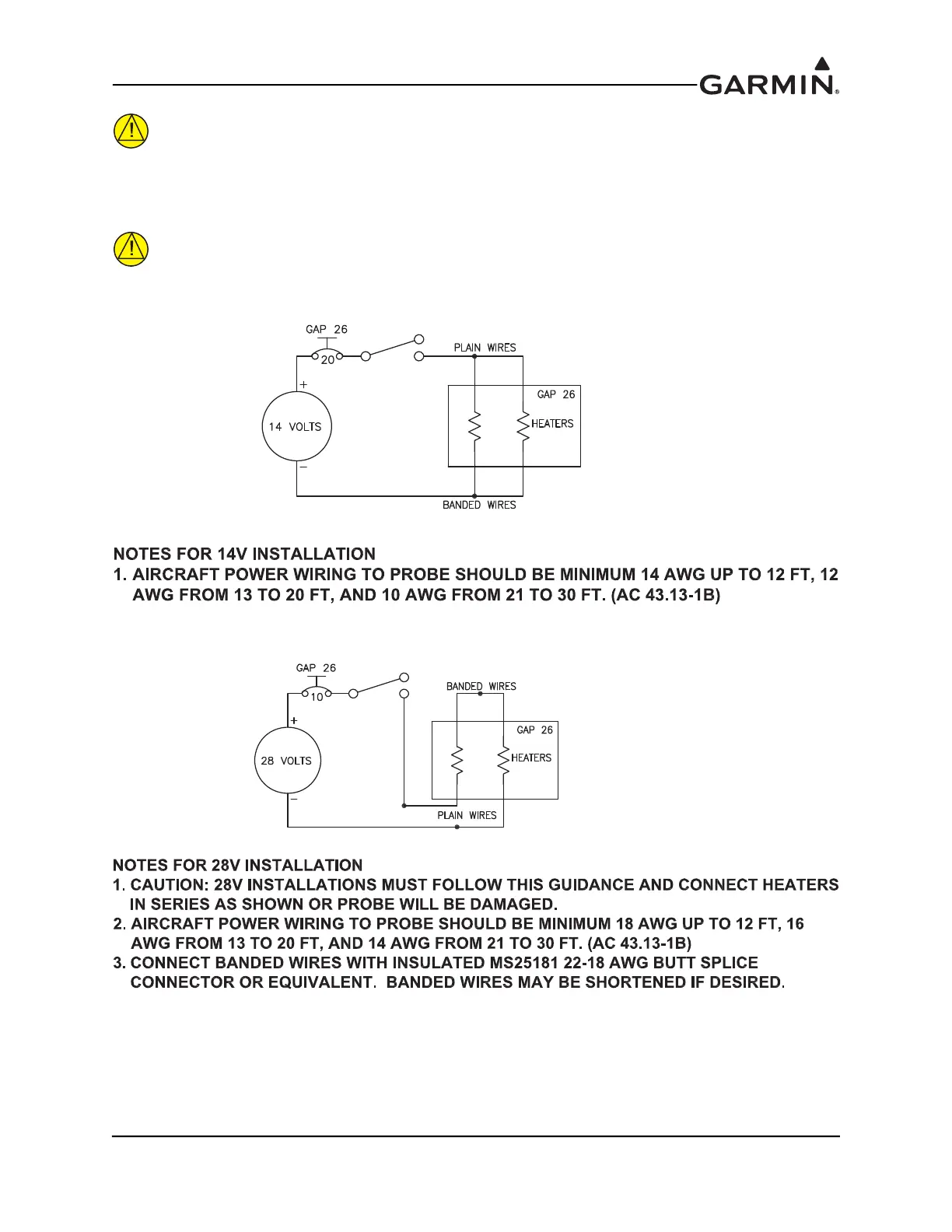 Do not connect the heaters in parallel to 28V. See Figure 5-7 for use on 28V aircraft. The