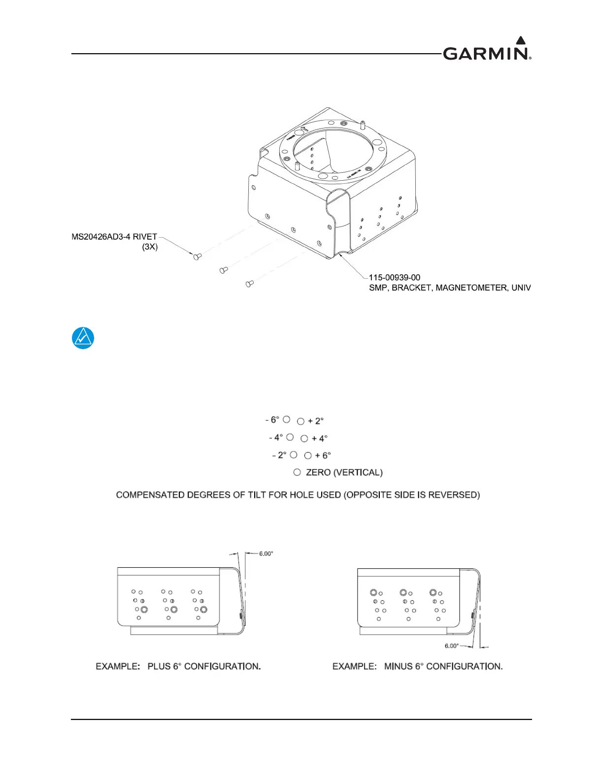 illustrates the offset rivet holes which may be utilized to tilt the GMU 22 up (plus) from the