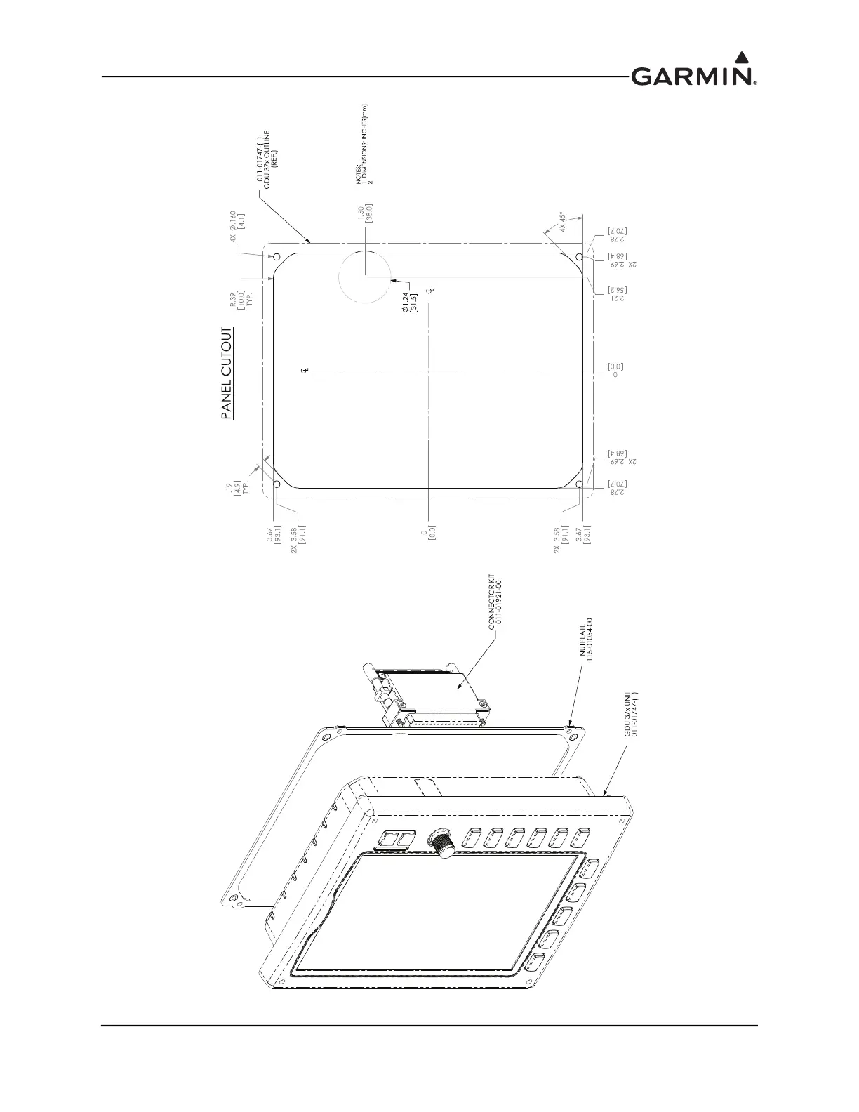 Figure E-8 GDU 37X Assembly/Panel Cutout Drawing