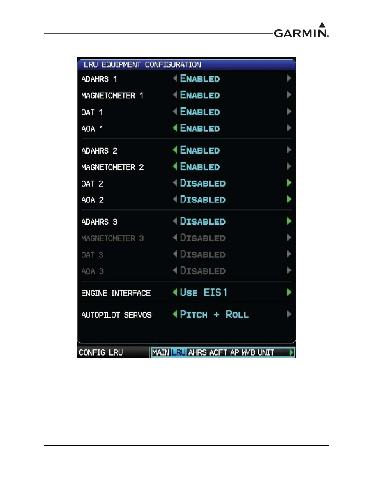 2. Use the FMS Joystick to enable or disable the listed LRUs.