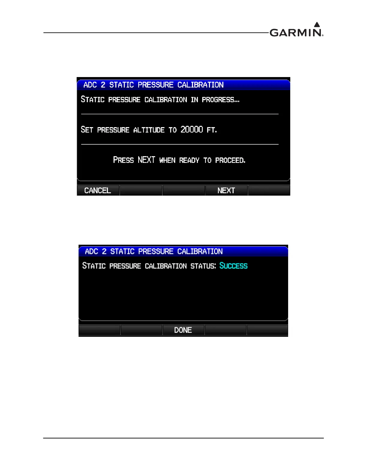 6. At each calibration point (0, 10K, 20K, and optionally 30K ft), the display will present a screen