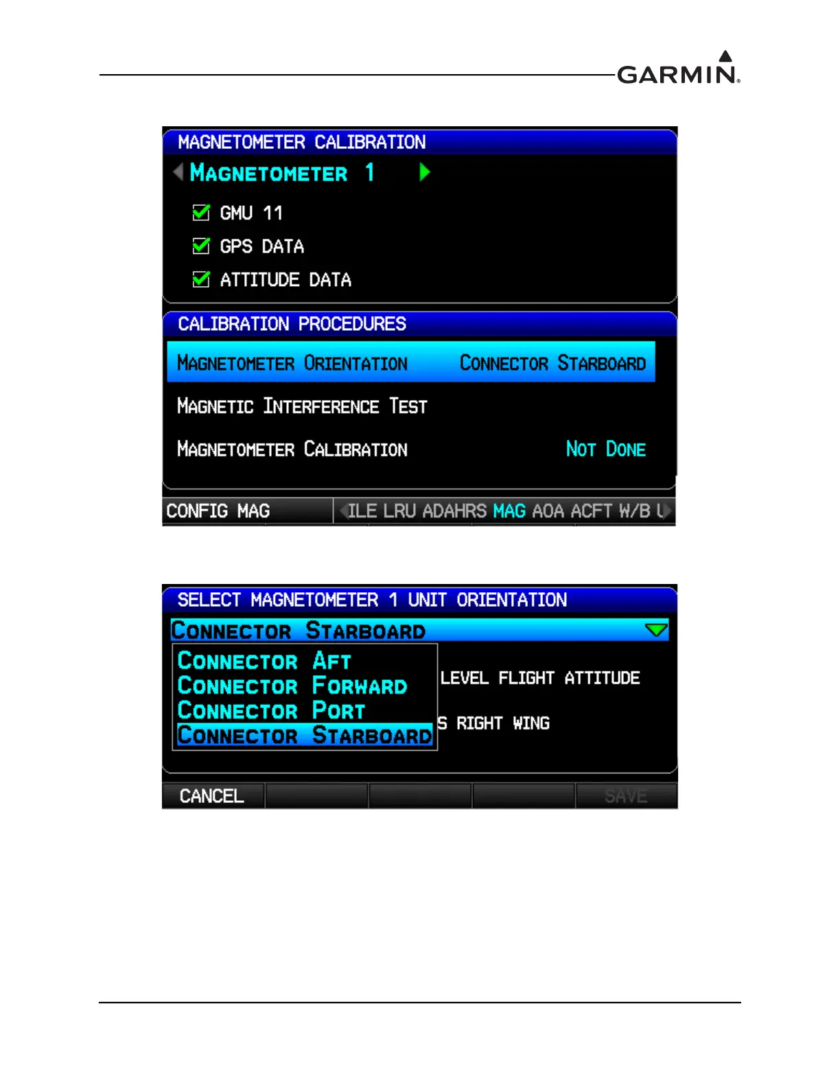 5. Use the FMS Joystick to select the correct orientation of the mounted GMU 11 and press the ENT
