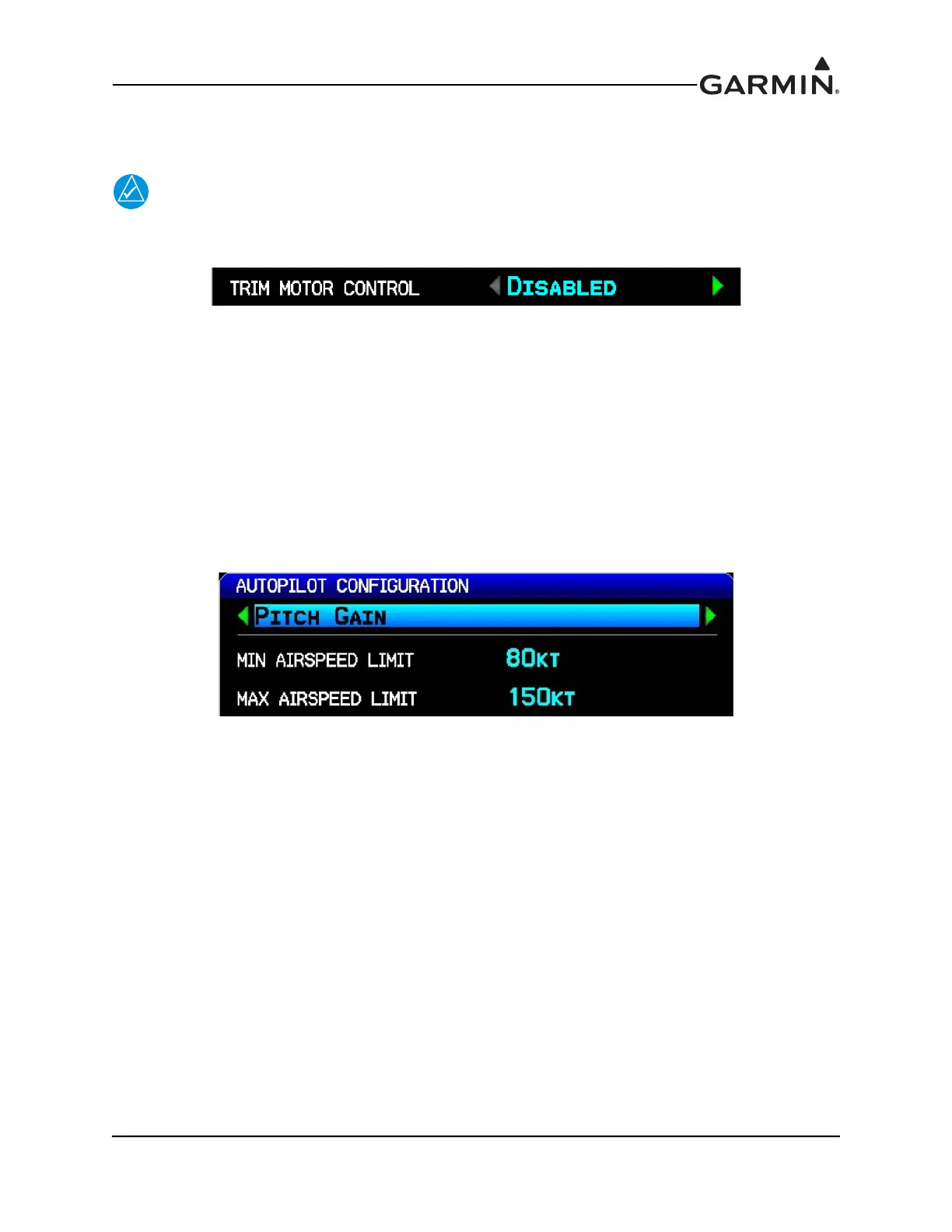 13. Go to the AP gain in configuration mode and set the proper min/max airspeed limits for the pitch