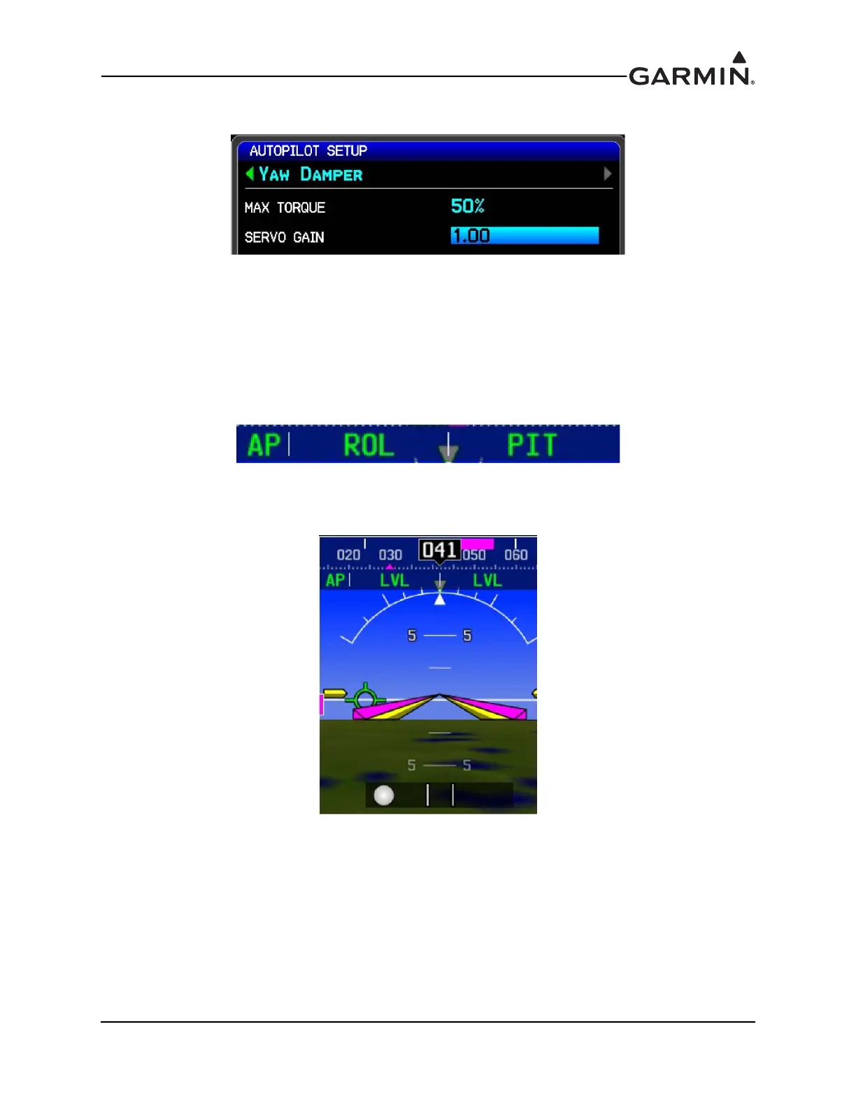 d) Select YAW DAMPER page and highlight the SERVO GAIN entry.