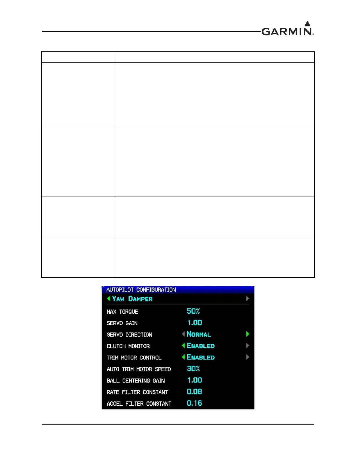 Table H-11 Yaw Damper Autopilot Configuration Settings