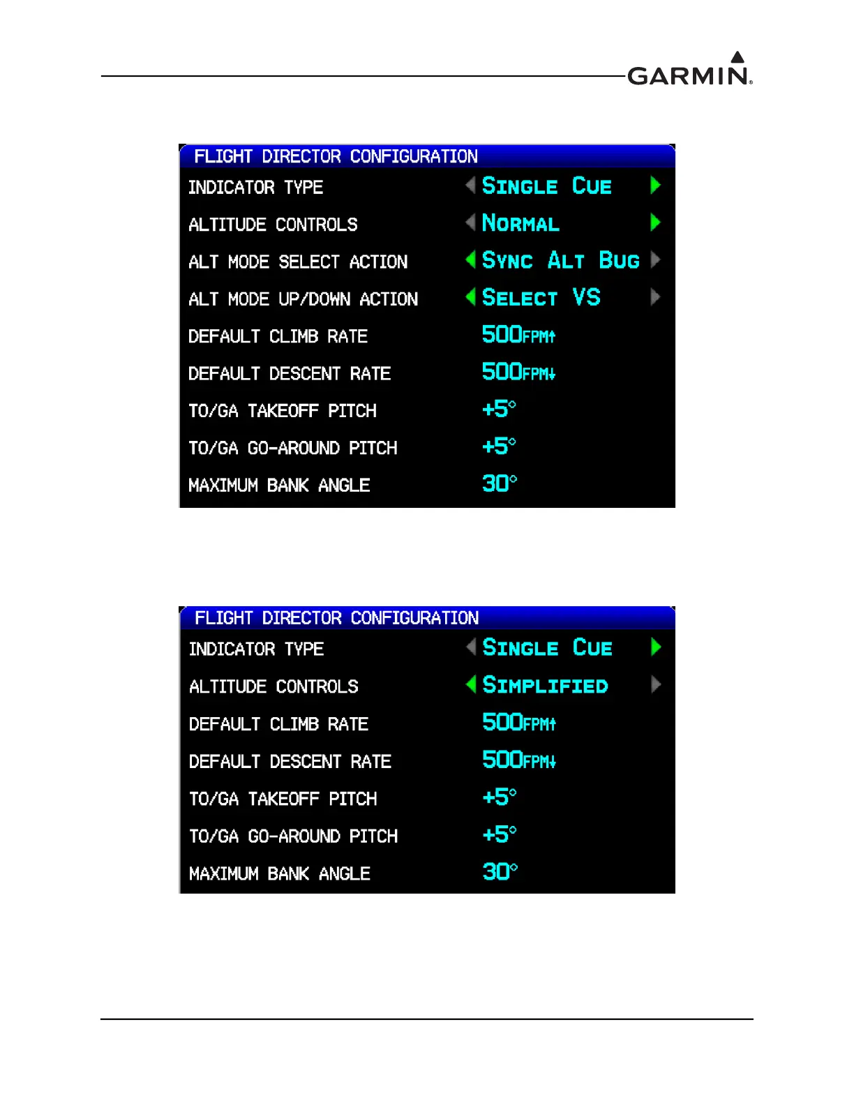 When Altitude Controls is set to Simplified , the ALT Mode User Select Action and ALT Mode User Up/