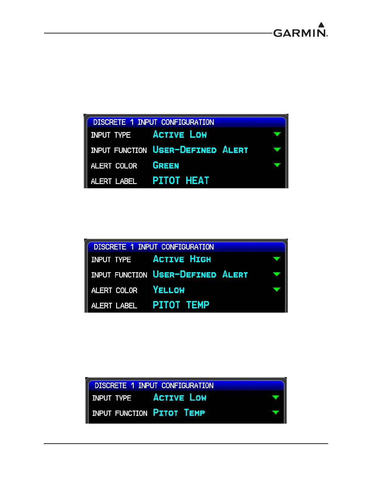 2. The discrete input configuration shown in Figure H-39 will result in a yellow "PITOT TEMP"