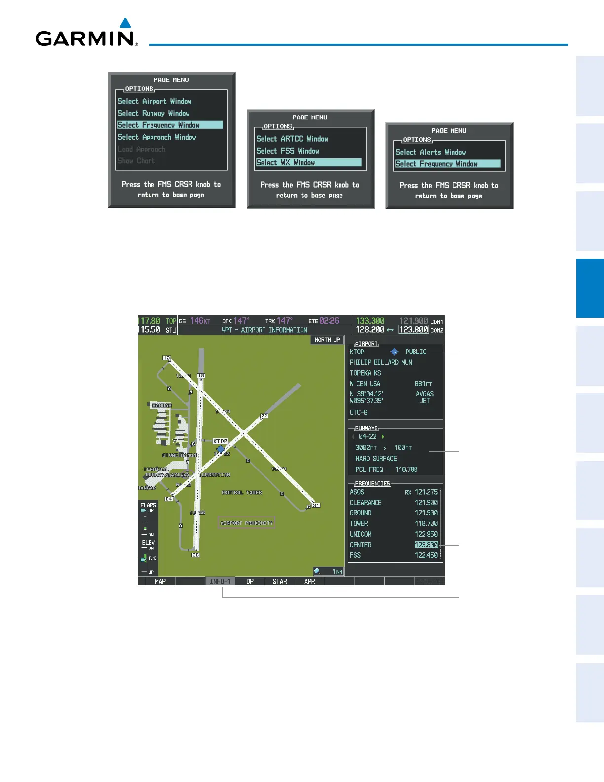 On the WPT - Airport Information Page, the cursor can be placed on the frequency field by pressing the