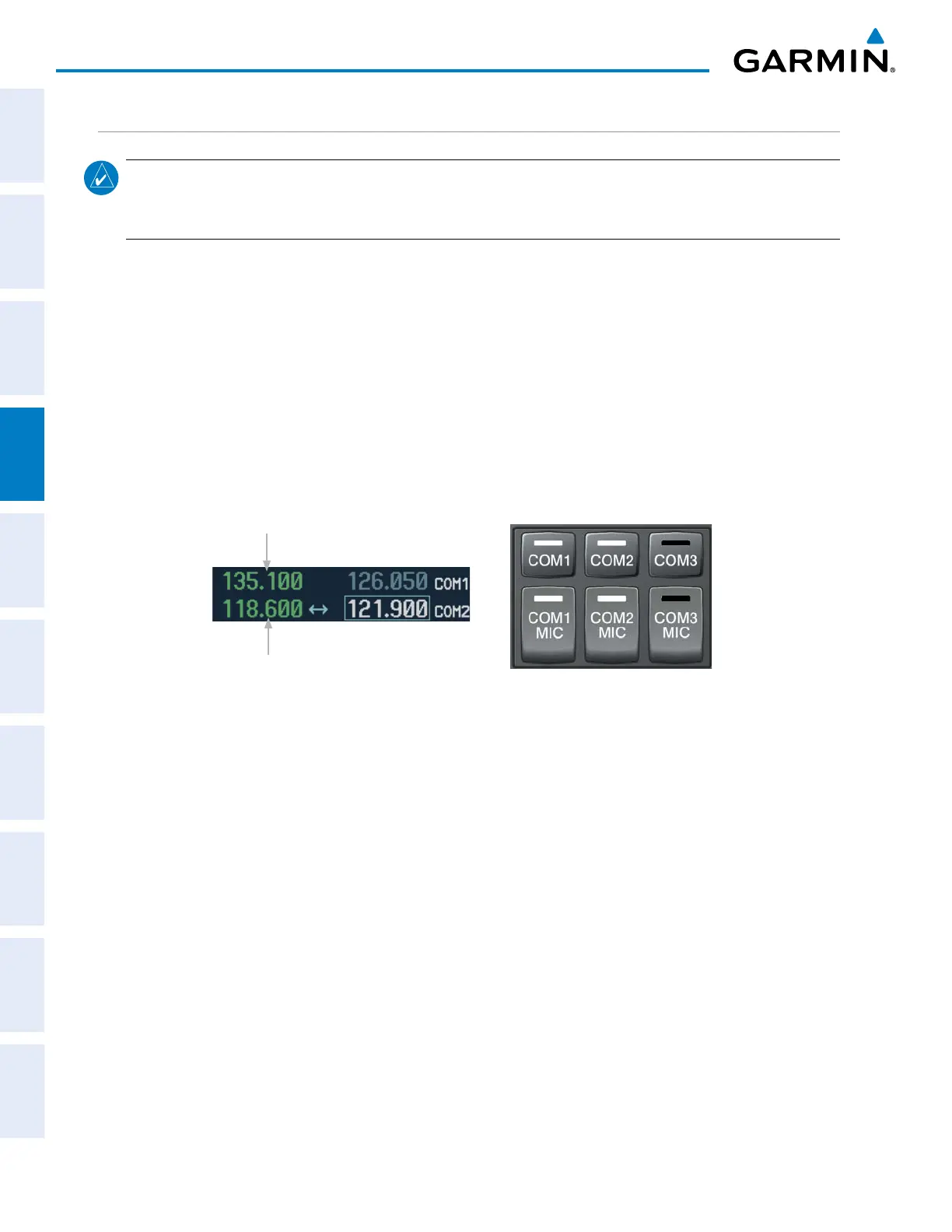 of the tuned frequencies. If the selected COM1 and COM2 frequencies are too close together, interference
