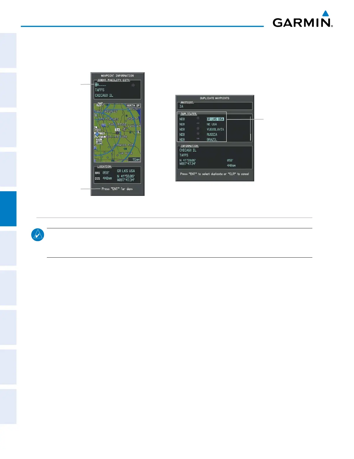 to turn the small FMS Knob during the selection process. If duplicate entries exist for an identifier, a Duplicate
