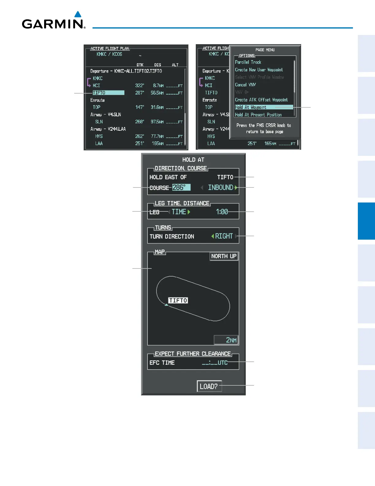 Figure 5-89 Creating a User Defined Holding Pattern at an Active Flight Plan Waypoint