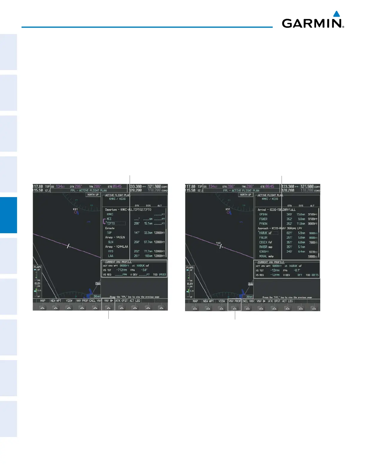 constraint “designated” for vertical guidance. Pressing the VNV Direct-to Softkey on the Active Flight Plan Page
