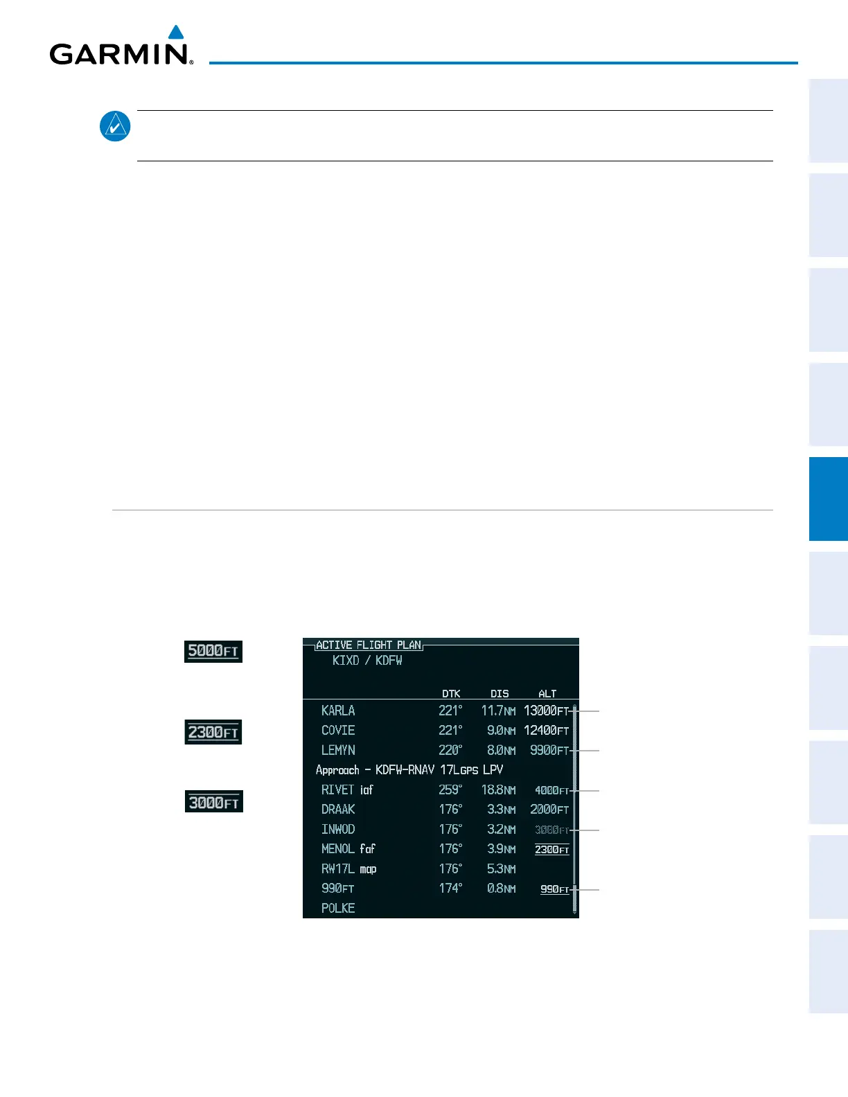 NOTE: The selected waypoint must have a designated altitude constraint (cyan number) to be used. If not,