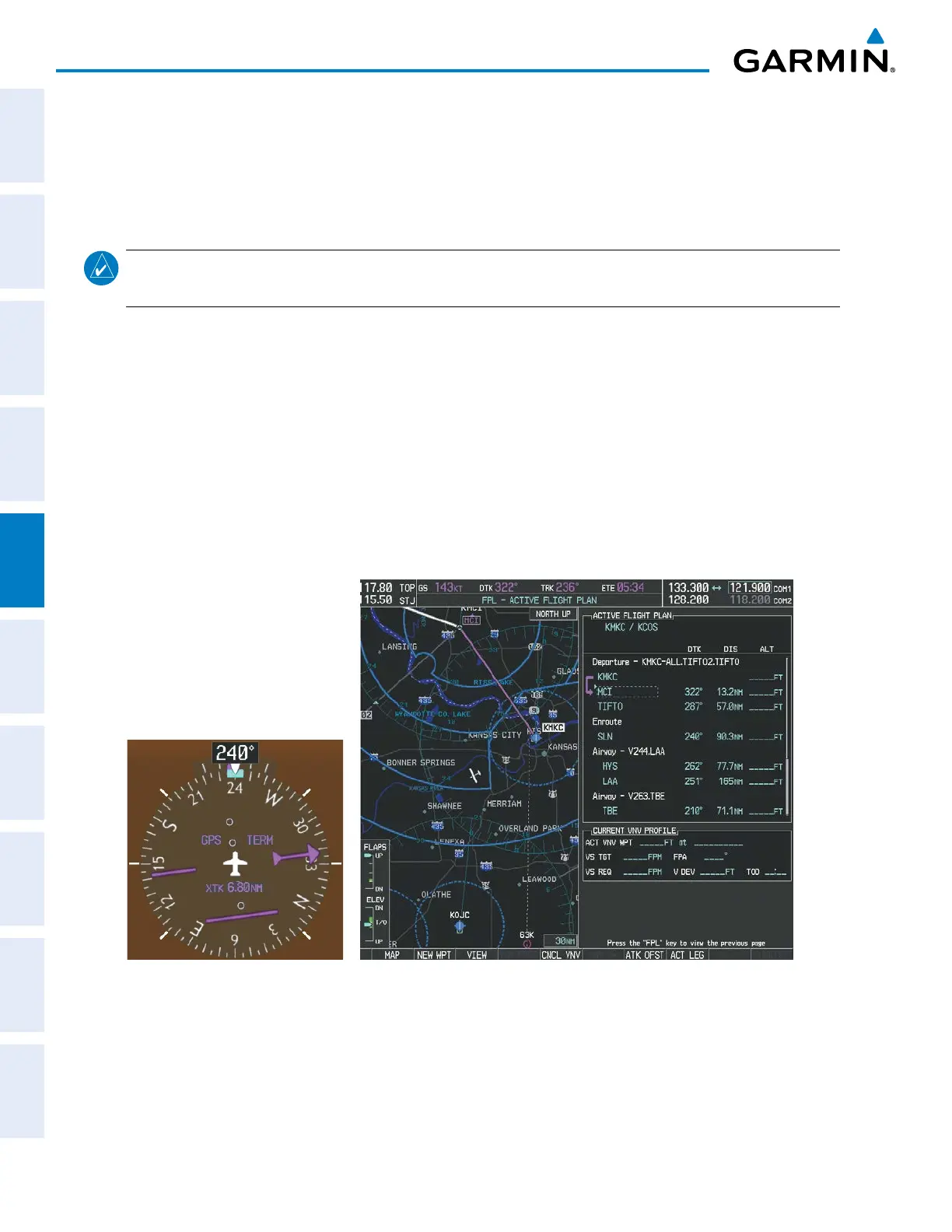 The following discussion is an example of navigating a flight plan with the SBAS capable GPS system while the