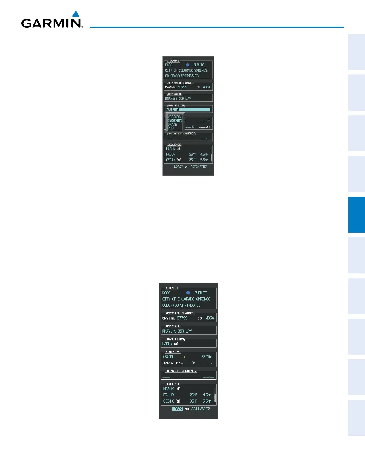 e) Press the ENT Key. A list of available transitions for the selected approach is displayed as in Figure 5-133.
