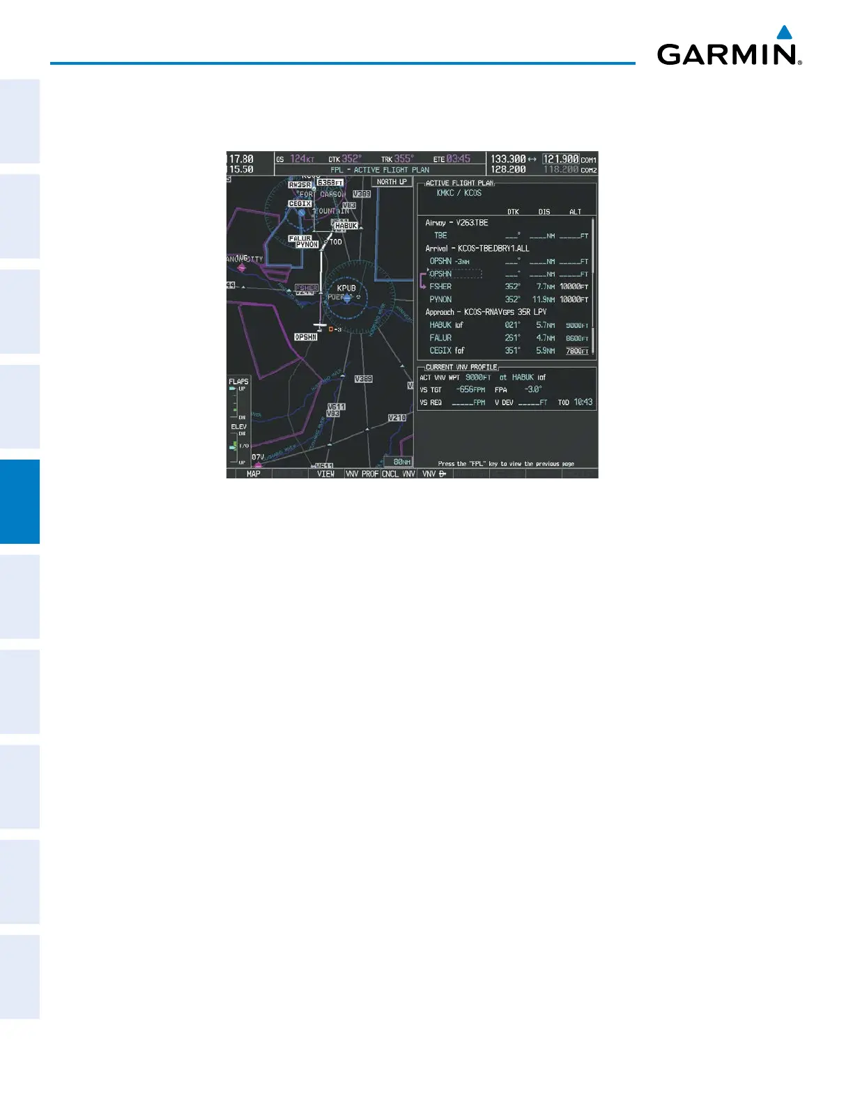A descent to HABUK is in the next leg. Note the TOD point on the map. Annunciations for the upcoming turn