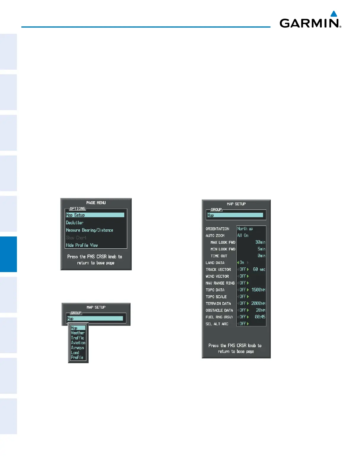 8) Press the FMS Knob or CLR Key to return to the Navigation Map Page with the changed settings.