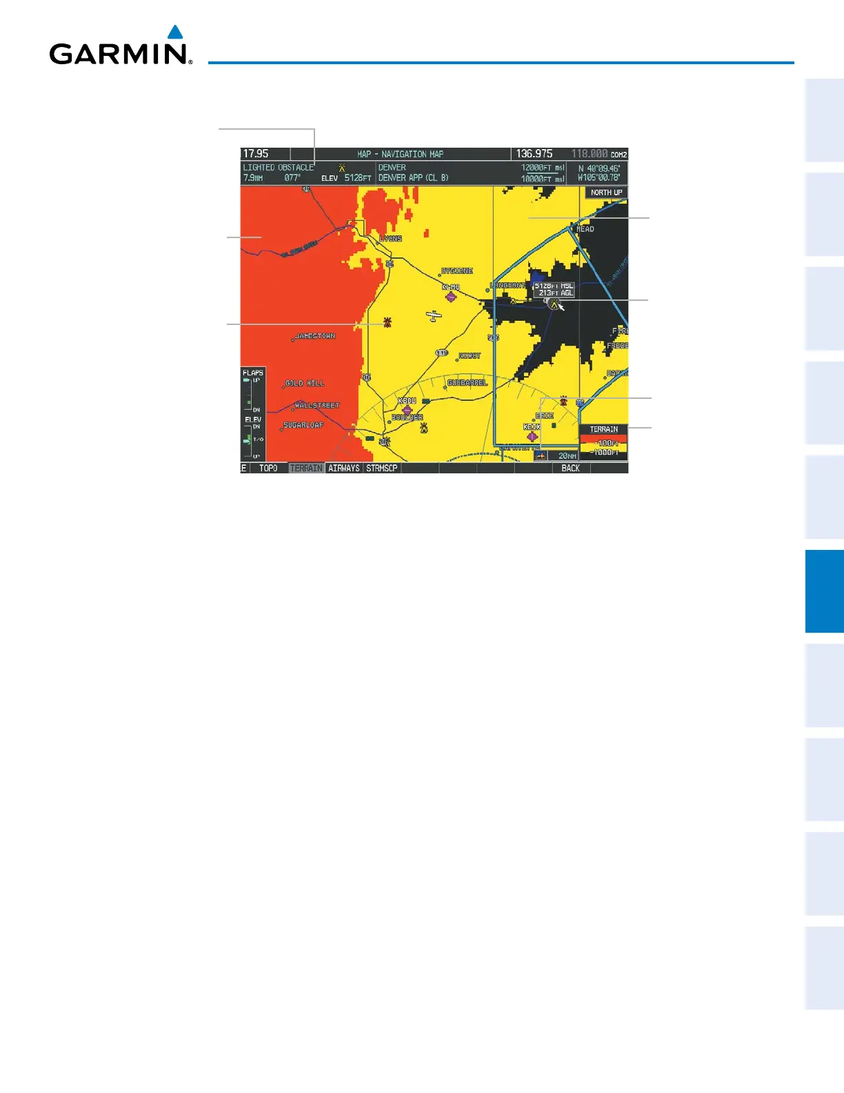 The Terrain Proximity Page is specialized to show terrain and obstacle data in relation to the aircraft’s