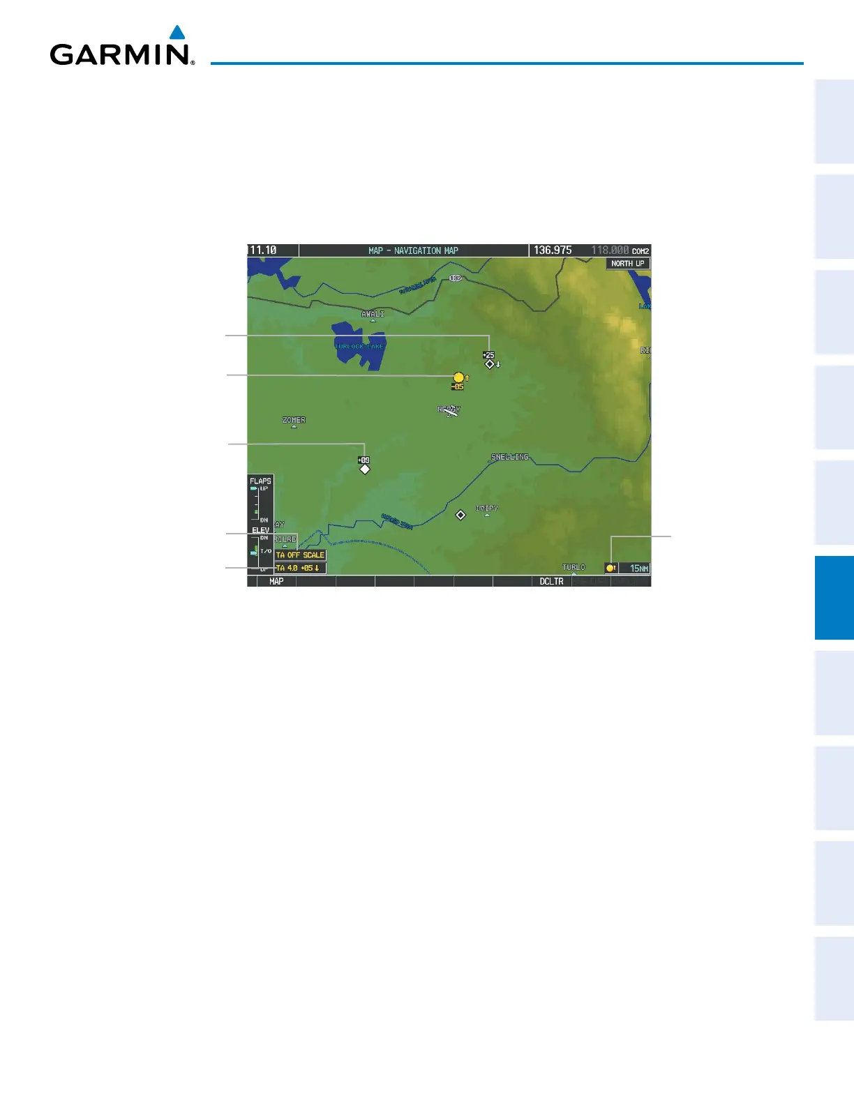 range settings. Traffic data symbols and labels can be decluttered from the display. If a map range larger than