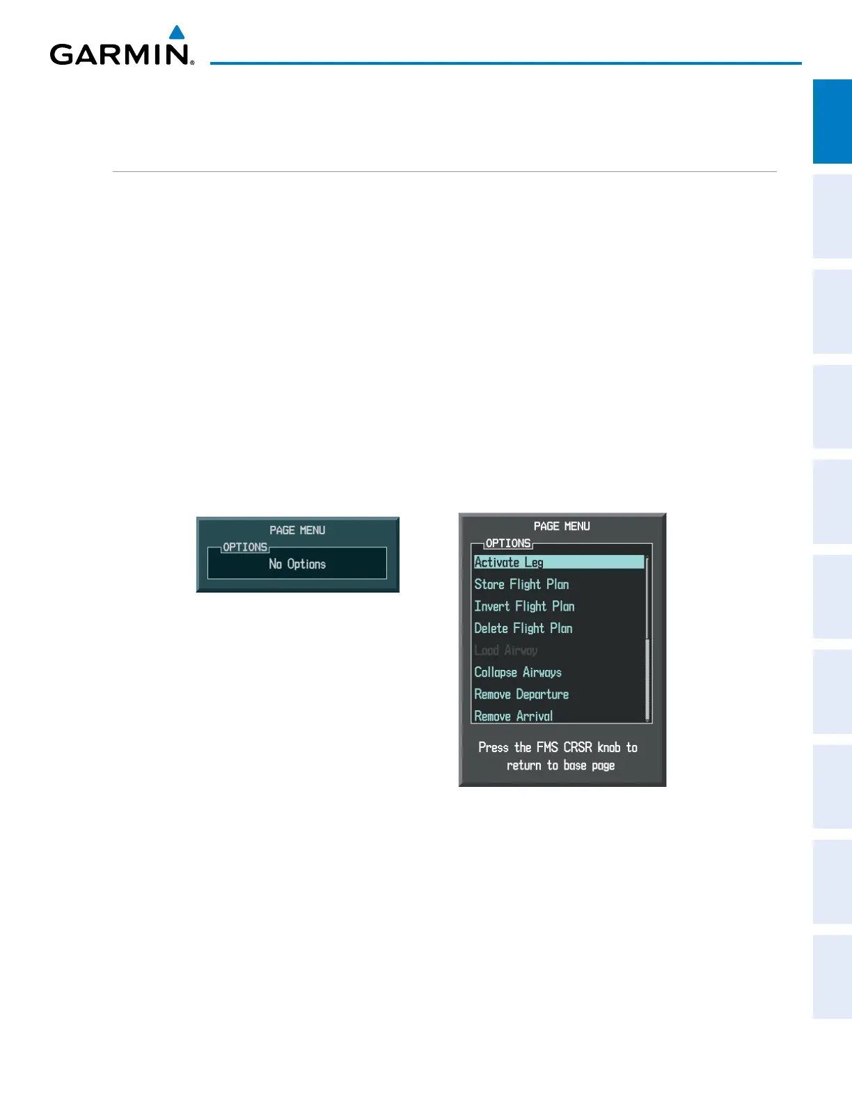 4) Press the CLR Key or the FMS Knob to remove the menu and cancel the operation.