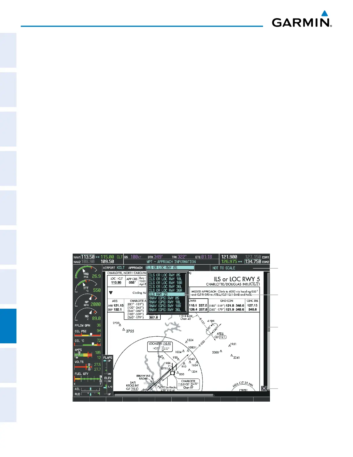 If a chart is available for the destination airport, or the airport selected in the active flight plan, the chart