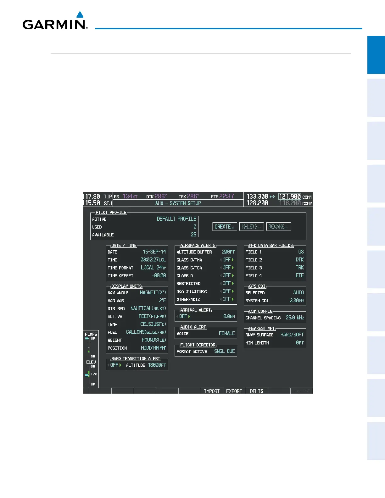 • Displayed measurement units • MFD Data Bar (Navigation Status Box) fields
