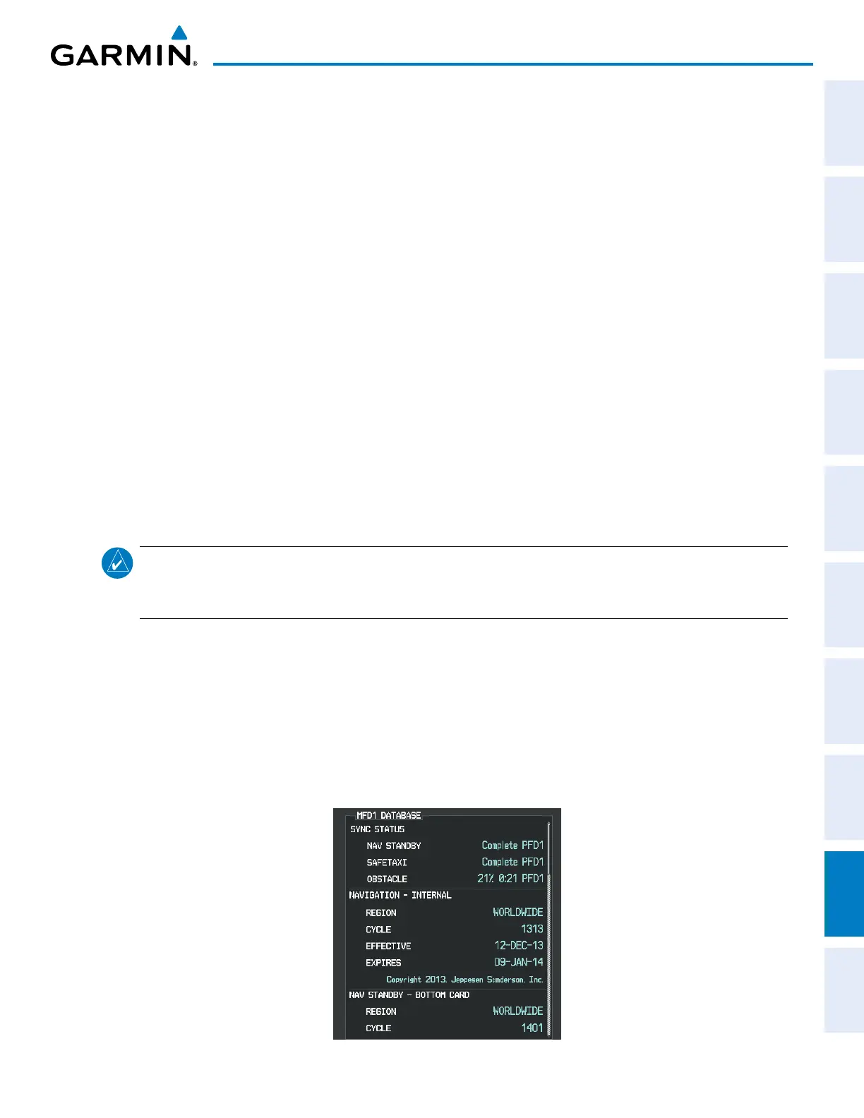 SD database card to the SD cards on the PFD and the MFD to ensure that all databases are synchronized